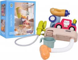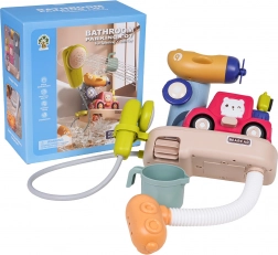 Dieses Kinder-Badeset mit Dusche und Zubehör bringt viel Spielspaß und fördert die Feinmotorik in der Badewanne. Dank zuverlässiger Saugnäpfe lässt es sich leicht an der Wanne oder auf glatten Fliesen befestigen. Die elektrische Brause (Batterien 3× 1,5 V, nicht enthalten) pumpt Wasser direkt aus der Wanne – einfach den unteren Teil des Moduls ins Wasser tauchen und die Taste drücken.