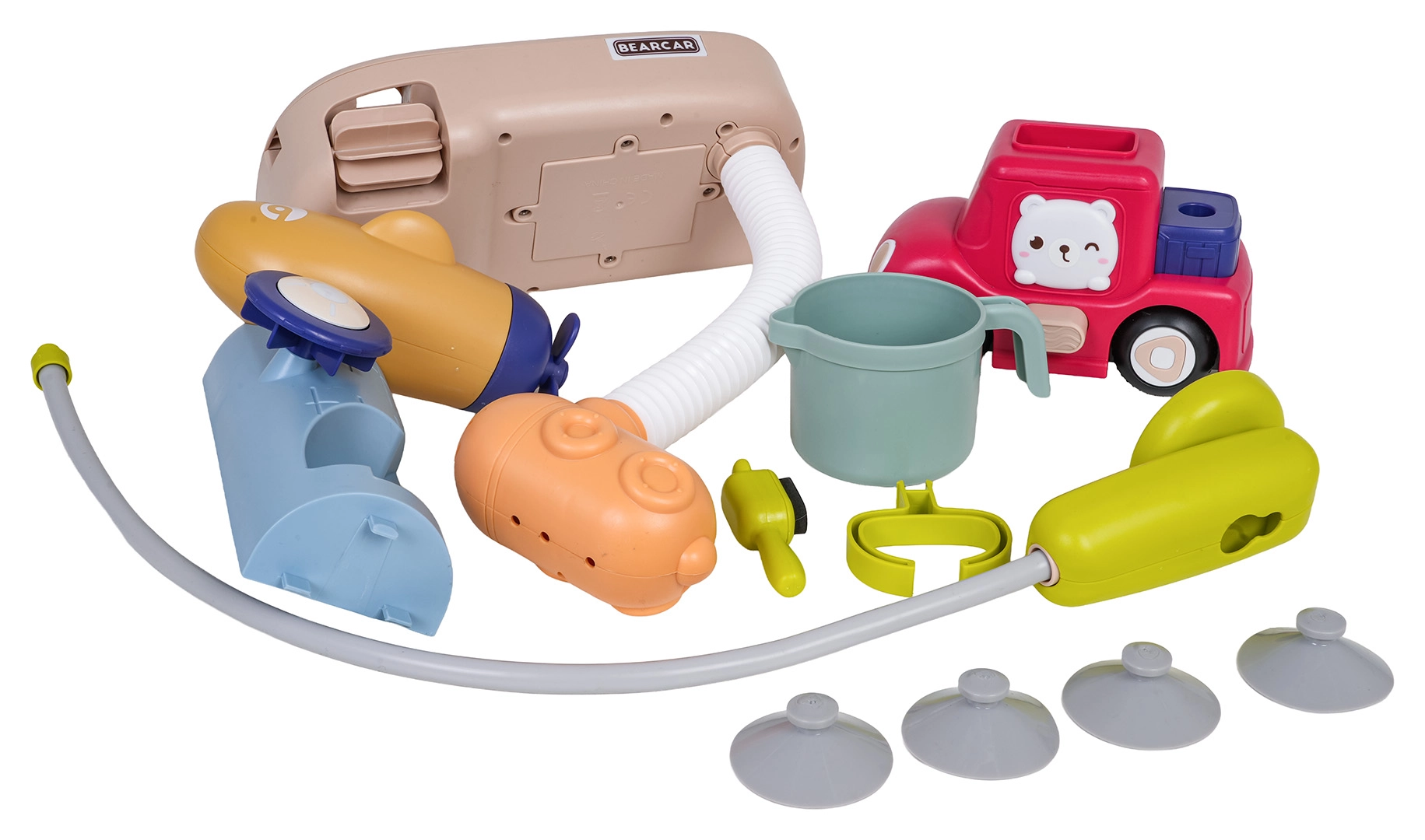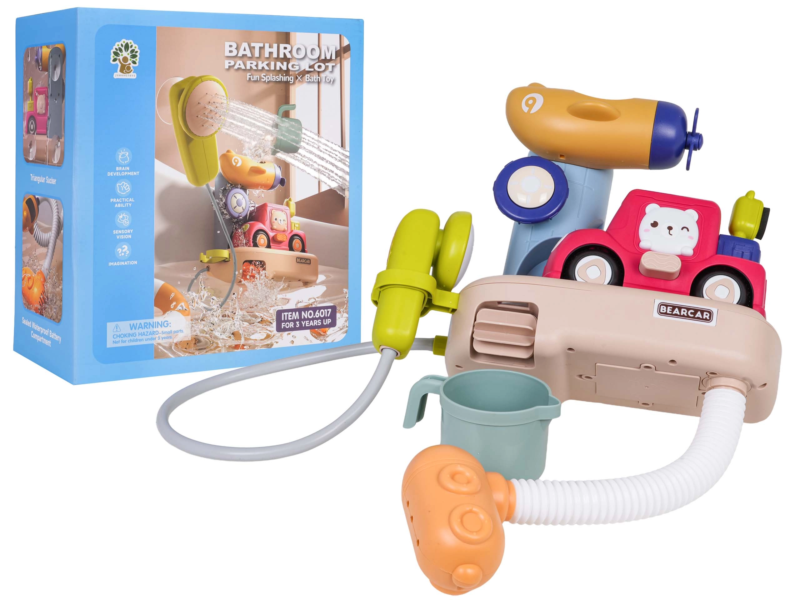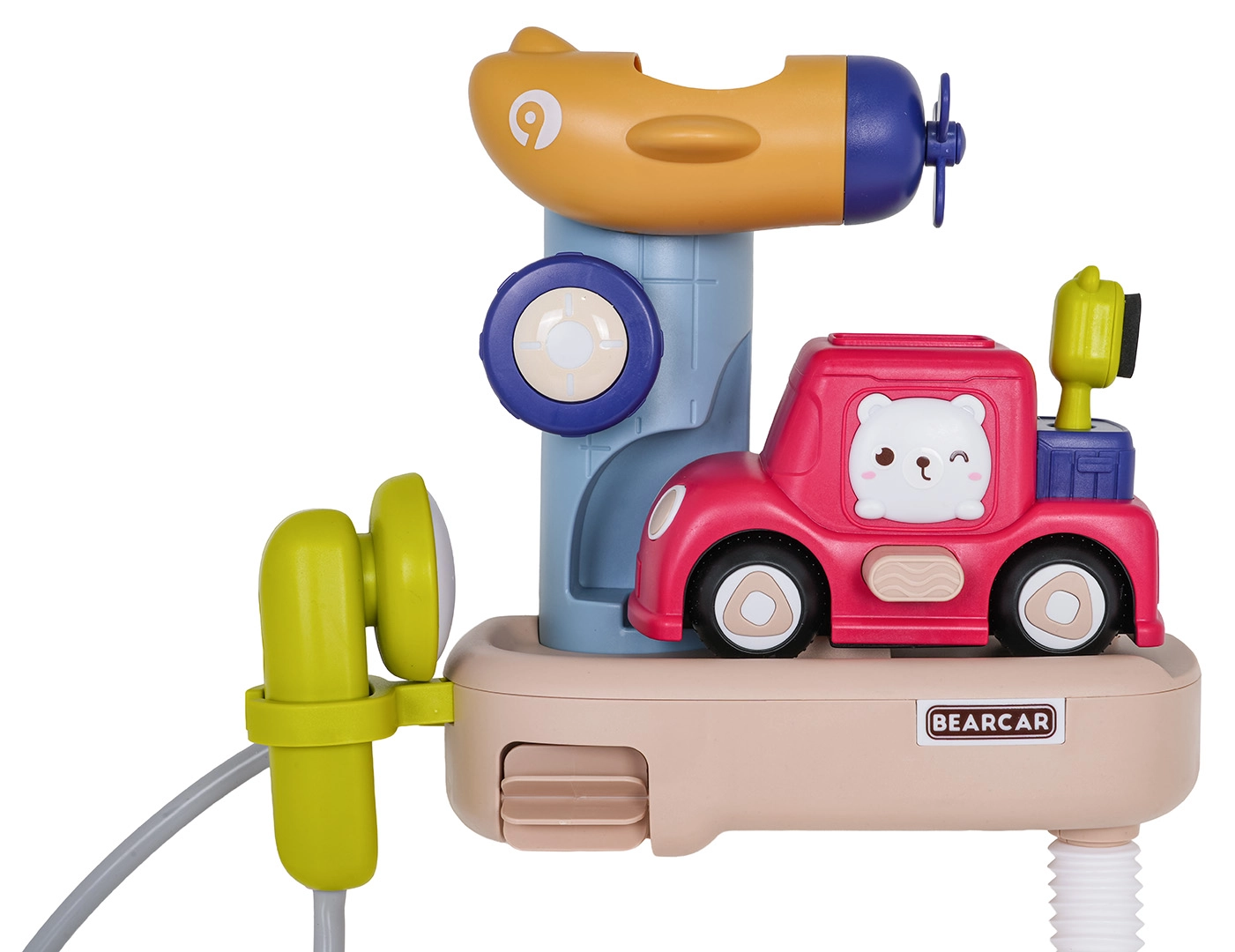 Zum Set gehören ein niedliches Auto, ein Becher und eine stabile Basis, die zum Gießen, Spritzen und Entdecken einladen. Hochwertige, gesundheitlich unbedenkliche Materialien und glatte Kanten gewährleisten sicheres Spielen. Dank der leuchtenden Farben und beweglichen Teile lieben Kinder das Baden, und Eltern schätzen die einfache Pflege sowie die schnelle Installation.