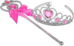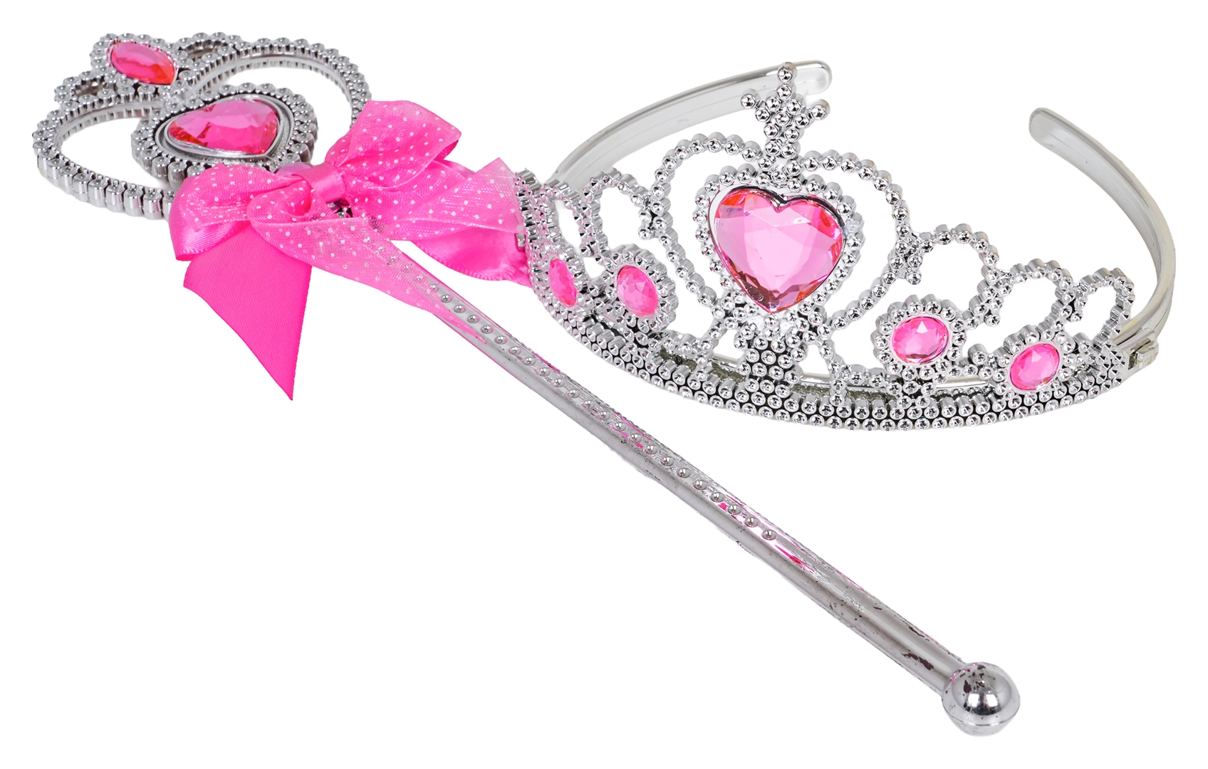 Silberne Krone mit rosafarbenen Steinchen und passender Stab verleihen dem Kostüm königlichen Glanz und fördern die Fantasie bei Rollenspielen.