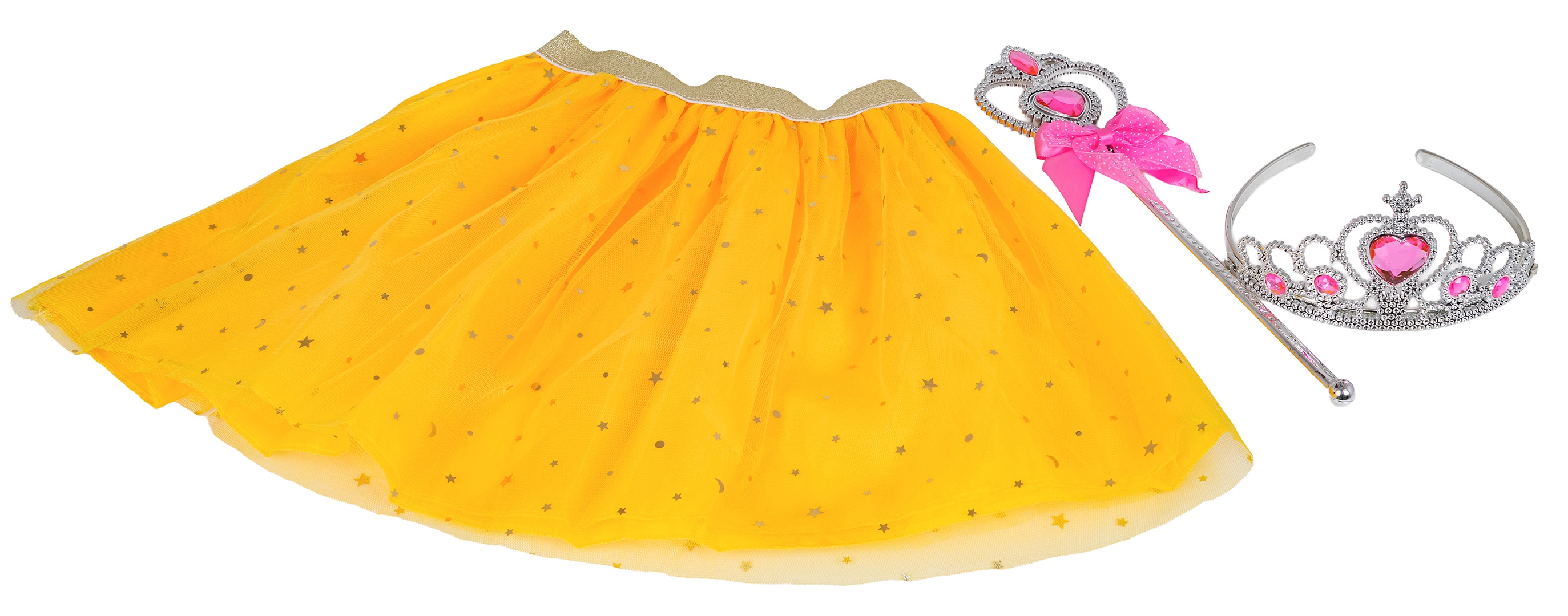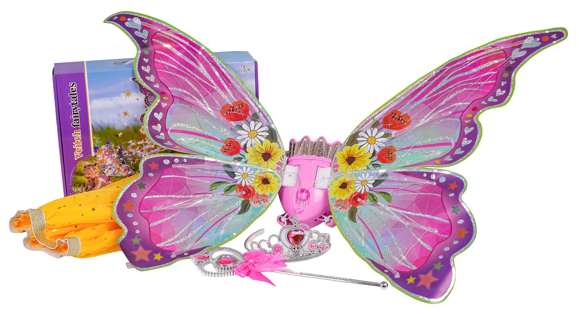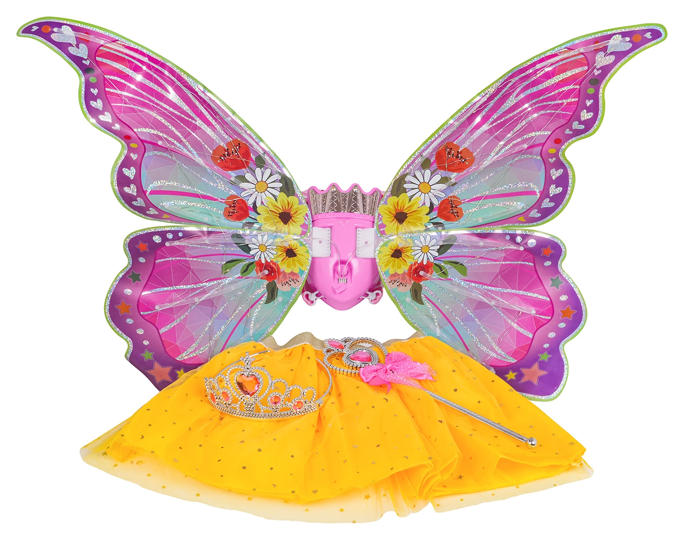 Schmetterlingsflügel mit Licht und Ton, gelber Rock, Zauberstab, Krone