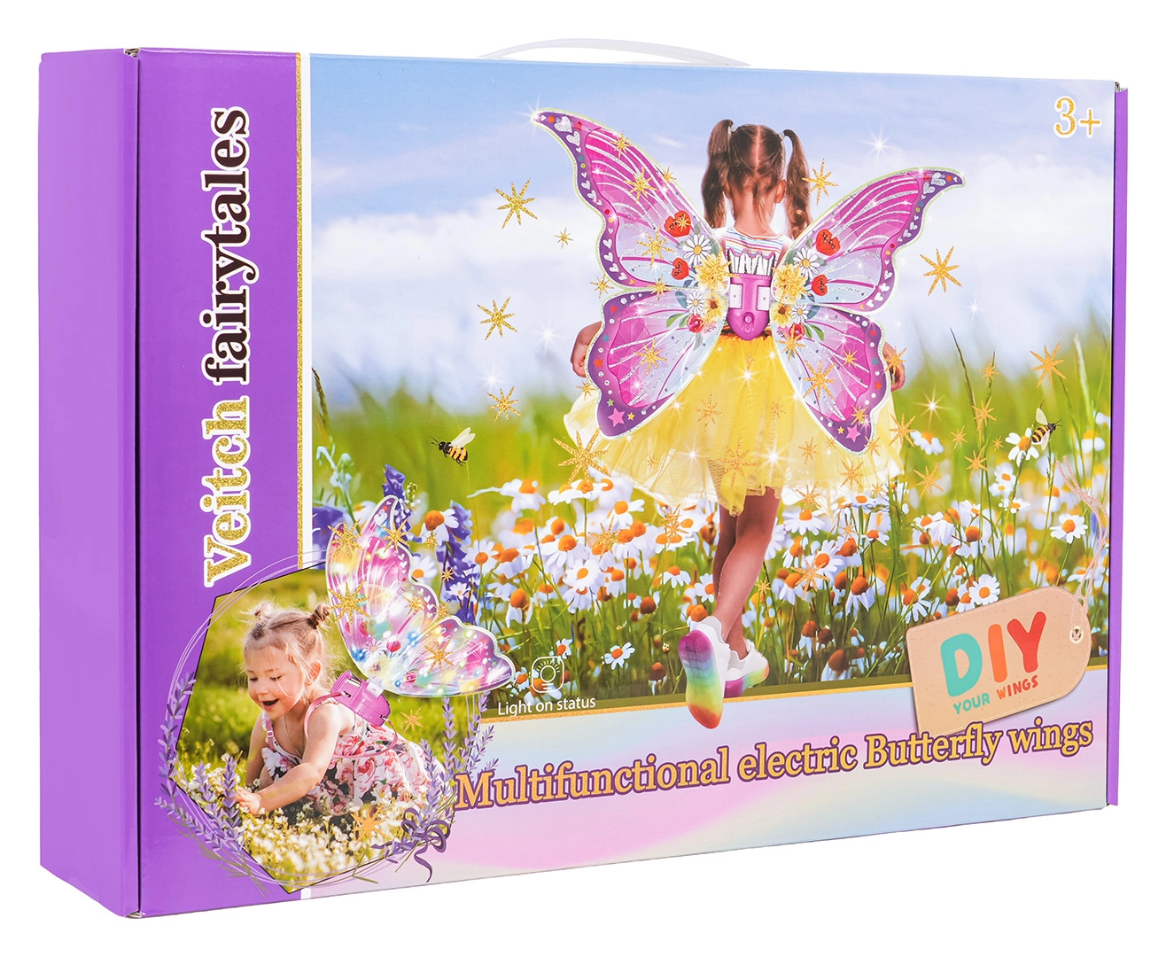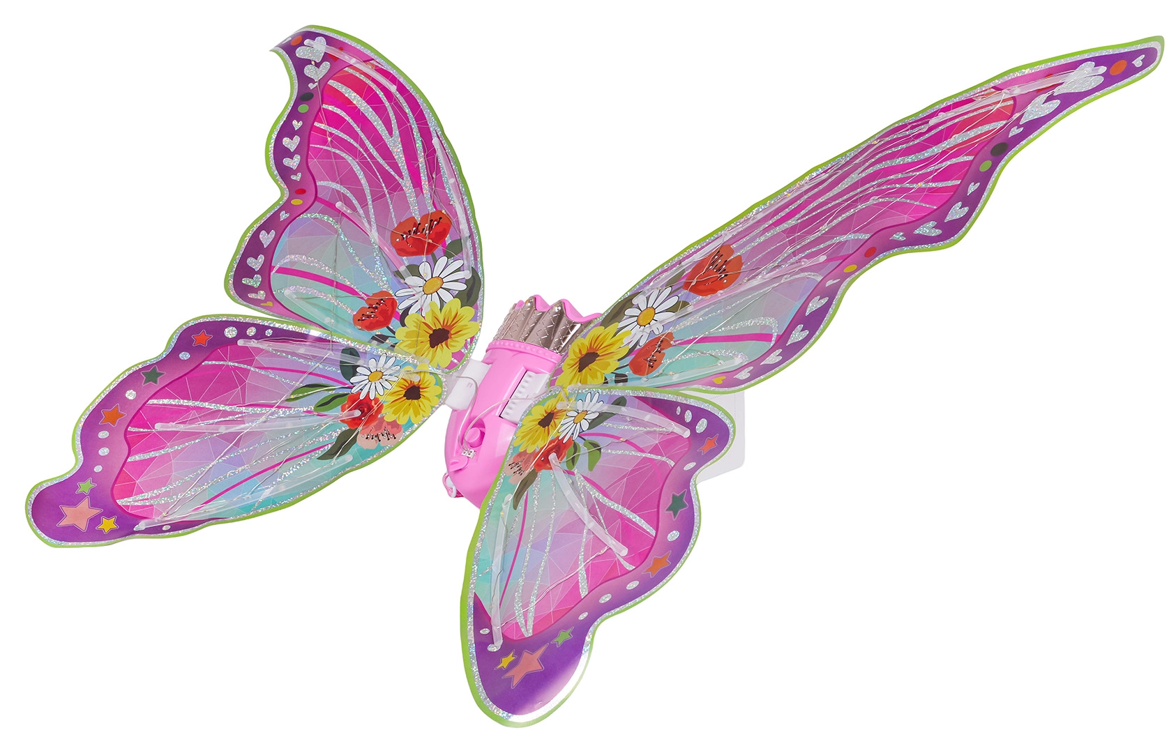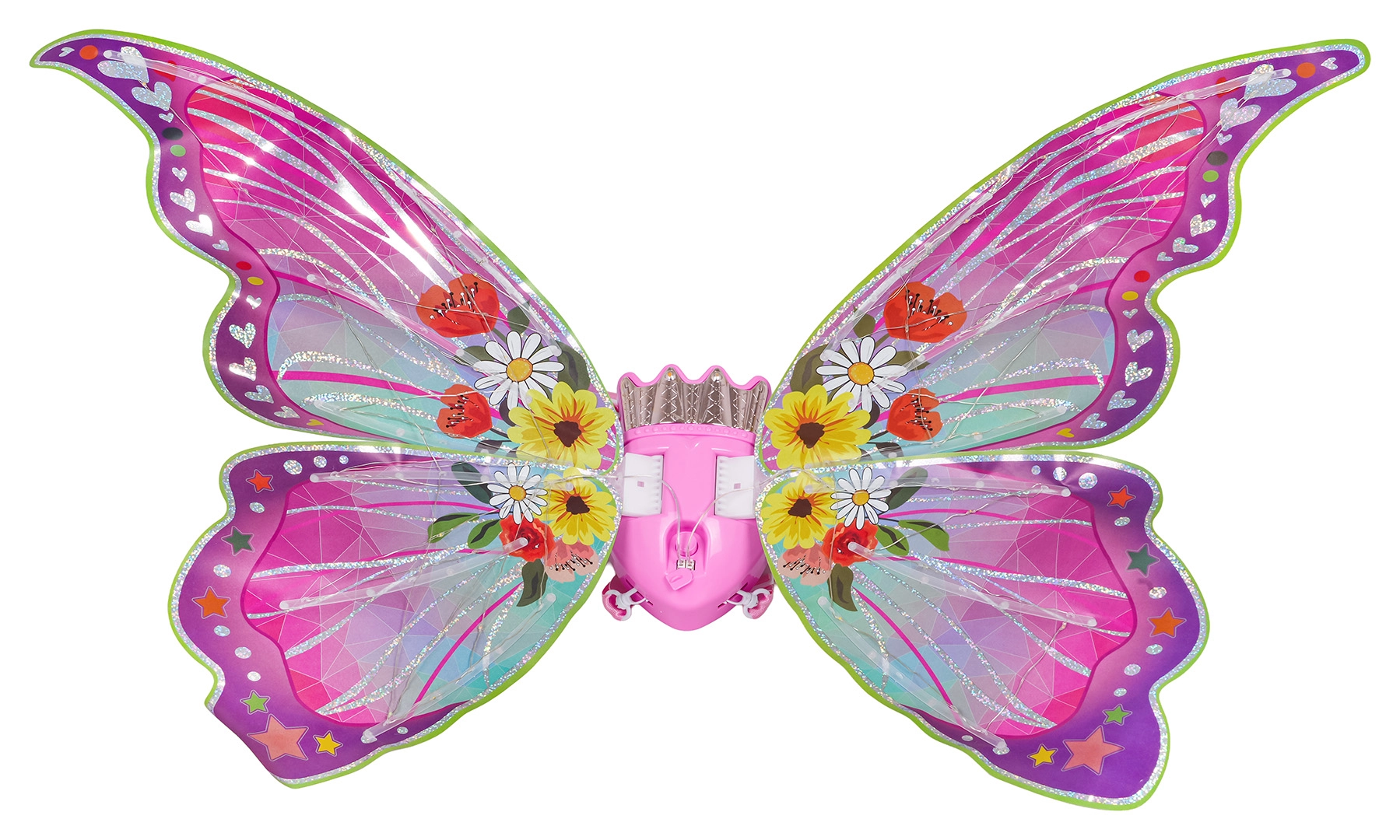 Die Schmetterlingsflügel bieten mehrere Modi: Musik + Flügelschlag + Lichteffekte, Flügelschlag + Licht, Flügelschlag + Blinklicht sowie reiner Flügelschlag. Verstellbare Träger sorgen für einen bequemen Sitz, die leichte Konstruktion und mehrfarbige LED-Lichter schaffen bei jedem Spiel eine magische Atmosphäre.