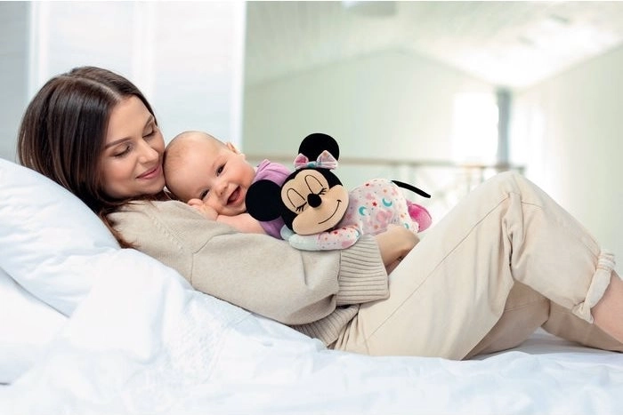 Die entspannende Plüsch-Minnie wurde für ein ruhiges, geborgenes Einschlafen der Kleinsten entwickelt. Dank der Chromotherapie mit sanft wechselnden Farben und mehreren Klangmodi (weißes Rauschen, Herzschlag, klassische Musik und beruhigende Melodien) hilft sie, Umgebungsgeräusche zu dämpfen und eine Atmosphäre der Sicherheit zu schaffen. Die kuschelweichen Materialien und der liebevolle Look unterstützen die Entspannung in der Abendroutine.