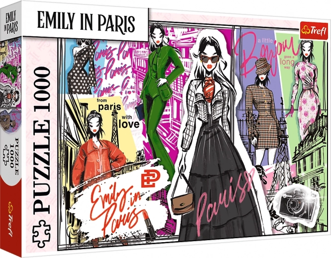 Puzzle EMILY IN PARIS mit 1000 Teilen und den Maßen 68,3 × 48 cm. Hochwertiger Druck, präzise Stanzungen und stilvolles Motiv für Entspannung und Dekoration.