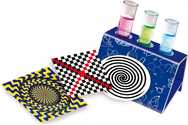 Das Set enthält Karten mit optischen Illusionen und einfache Experimente, die Kindern zeigen, wie das menschliche Auge Licht, Farben und Muster wahrnimmt.