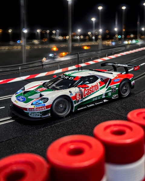 Das Modell Ford GT „Nr. 67“ für Slotcar-Bahnen der CARRERA-Serie Digital 124 überzeugt durch präzise Verarbeitung, hohe Stabilität und einen geschmeidigen Kurvenlauf. Dank der doppelten Kontaktbürsten und des Leitkiels genießen Sie sicheren Grip und konstante Performance selbst bei aggressiver Fahrweise.