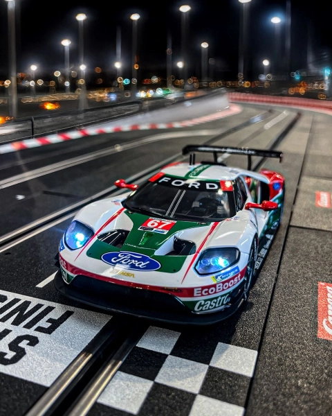 Das Auto ist mit funktionierenden Front- und Rücklichtern ausgestattet, die den Realismus der Rennen erhöhen. Im Lieferumfang finden Sie außerdem Ersatzbürsten und einen Ersatz-Leitkiel sowie weiteres Zubehör, sodass Sie für lange Rennsessions ohne Kompromisse bereit sind.
