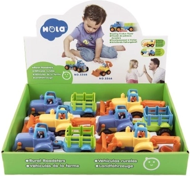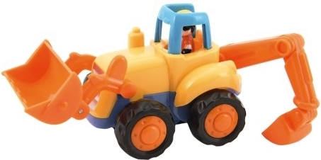 Traktor mit Anhänger/Bulldozer aus Kunststoff 16 cm für die Kleinsten mit Rückzugsmotor 6 Stück im Karton 18M+