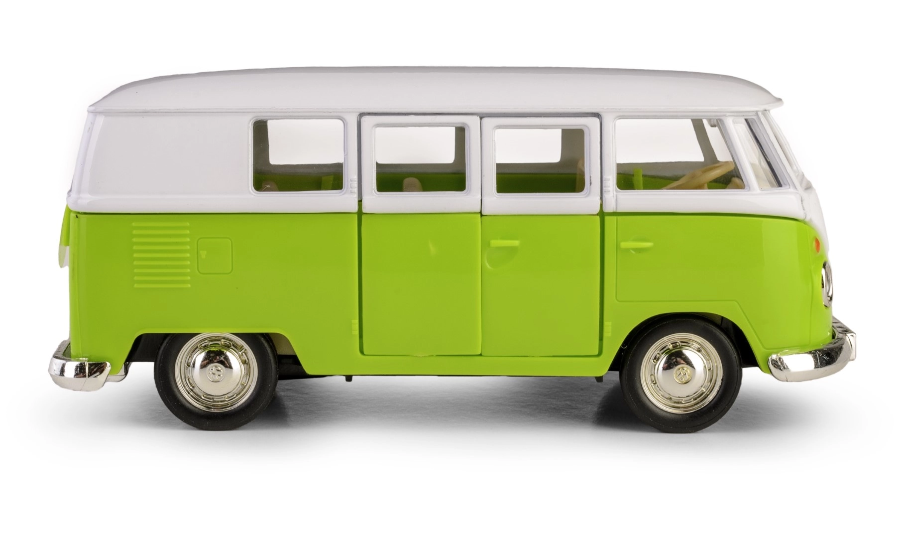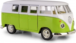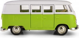 Dieses präzise Modell des legendären Kleinbusses aus den 50er-Jahren in attraktivem grün-weißen Finish verbindet Sammlerqualität mit spielerischen Funktionen. Die Metallkarosserie mit Kunststoffdetails sorgt für Robustheit und einen beeindruckend realistischen Look, der in jeder Vitrine auffällt.