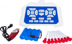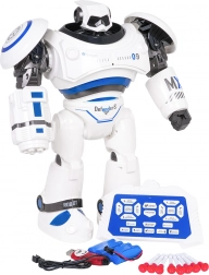 Im Lieferumfang ist ein wiederaufladbarer 4,8 V 700 mAh Ni-Cd-Akku mit USB-Ladung sowie ein Set aus 8 Saugnapf-Pfeilen enthalten. Der Roboter fährt vorwärts und rückwärts, lenkt nach rechts und links, kann gleiten und eine 360°-Drehung ausführen. Das Pfeilschießen hat eine Reichweite von etwa 5 m. Der DEMO-Modus zeigt alle Fähigkeiten auf Knopfdruck und die mehrstufige Lautstärkeregelung sorgt für komfortable Nutzung drinnen und draußen.