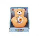 Drücken Sie den Knopf am Bauch des Kuschelbären und beobachten Sie, wie das Spielzeug ein quietschendes Geräusch macht, das Kinder unterhält und sie zum weiteren Erkunden anregt.