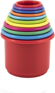 Das Set aus bunten stapelbaren Bechern enthält 11 Teile, die zu einem hohen Turm zusammengestellt werden können. Die Becher sind in verschiedenen Farben gestaltet und können ineinander gesteckt werden, was eine großartige Möglichkeit bietet, die feinmotorischen Fähigkeiten Ihres Kindes zu entwickeln.