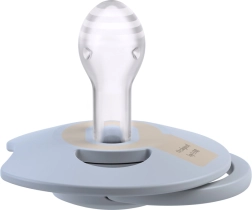 Der leichte und ergonomische Schild ist für freies Atmen durch die Nase profiliert und verfügt über Lüftungsöffnungen für eine bessere Luftzirkulation, wodurch Hautirritationen minimiert werden. Die abgeflachte Spitze und der dünne Hals ermöglichen dem Kind, den Mund frei zu schließen und mit Zahnfleisch und Zunge korrekt zu arbeiten, was das Risiko von Malokklusion reduziert. Der strapazierfähige Silikon verformt sich im Mund nicht und ist hypoallergen.