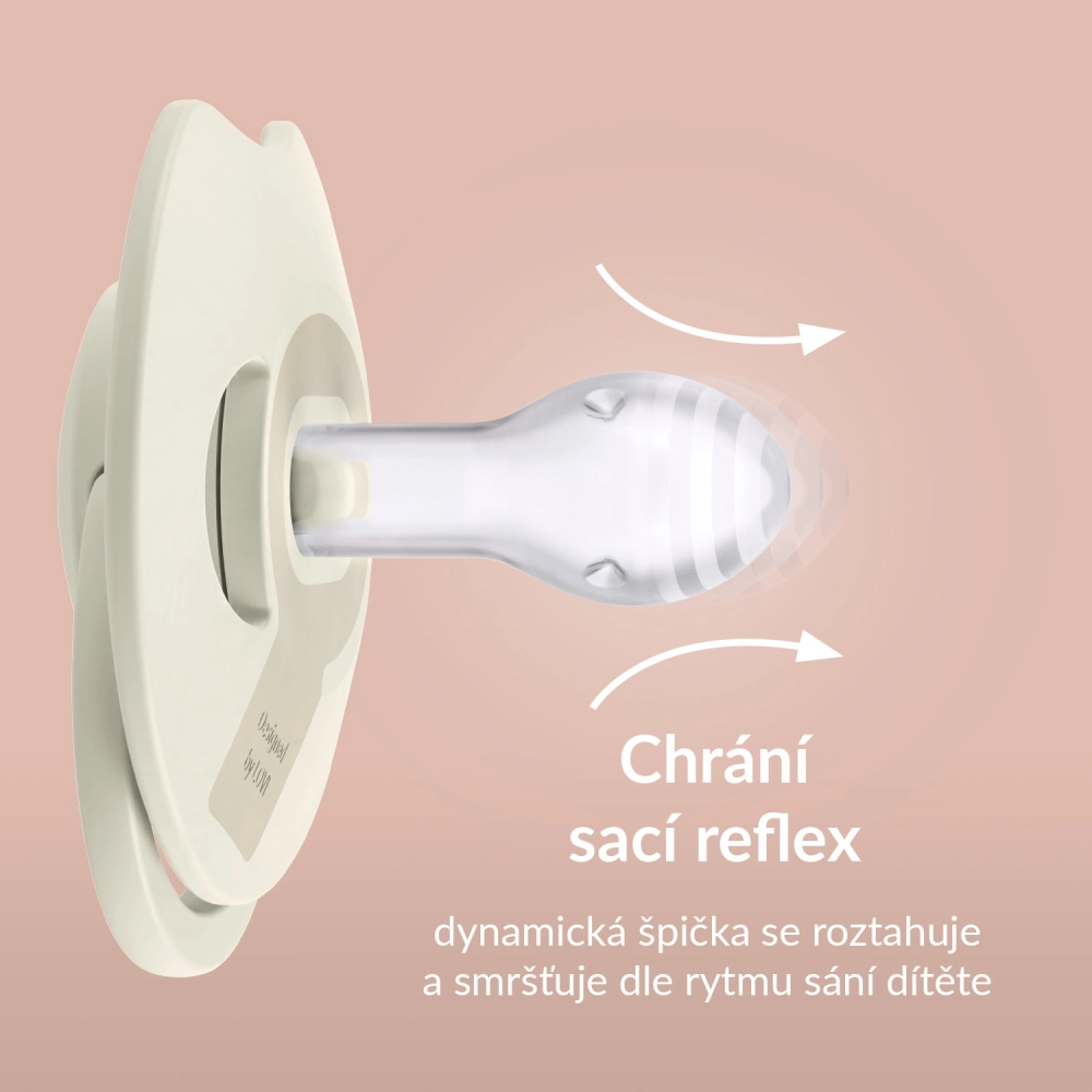 Der Sauger dehnt sich natürlich aus und zieht sich entsprechend dem Saugrhythmus zusammen, unterstützt das Stillen und die natürliche Sprach- und Bissentwicklung*.
