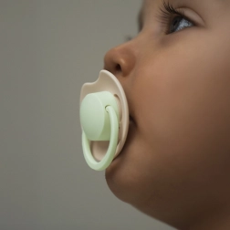 Der Mittelteil und der Griff des Schnullers leuchten sanft, sodass du ihn im Dunkeln schnell findest, ohne das Kind unnötig zu wecken.