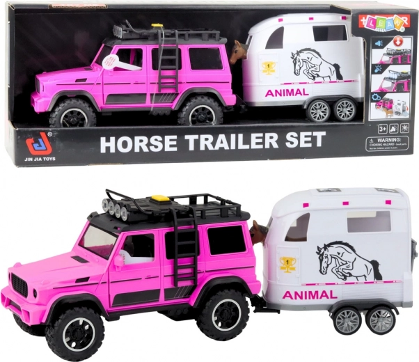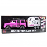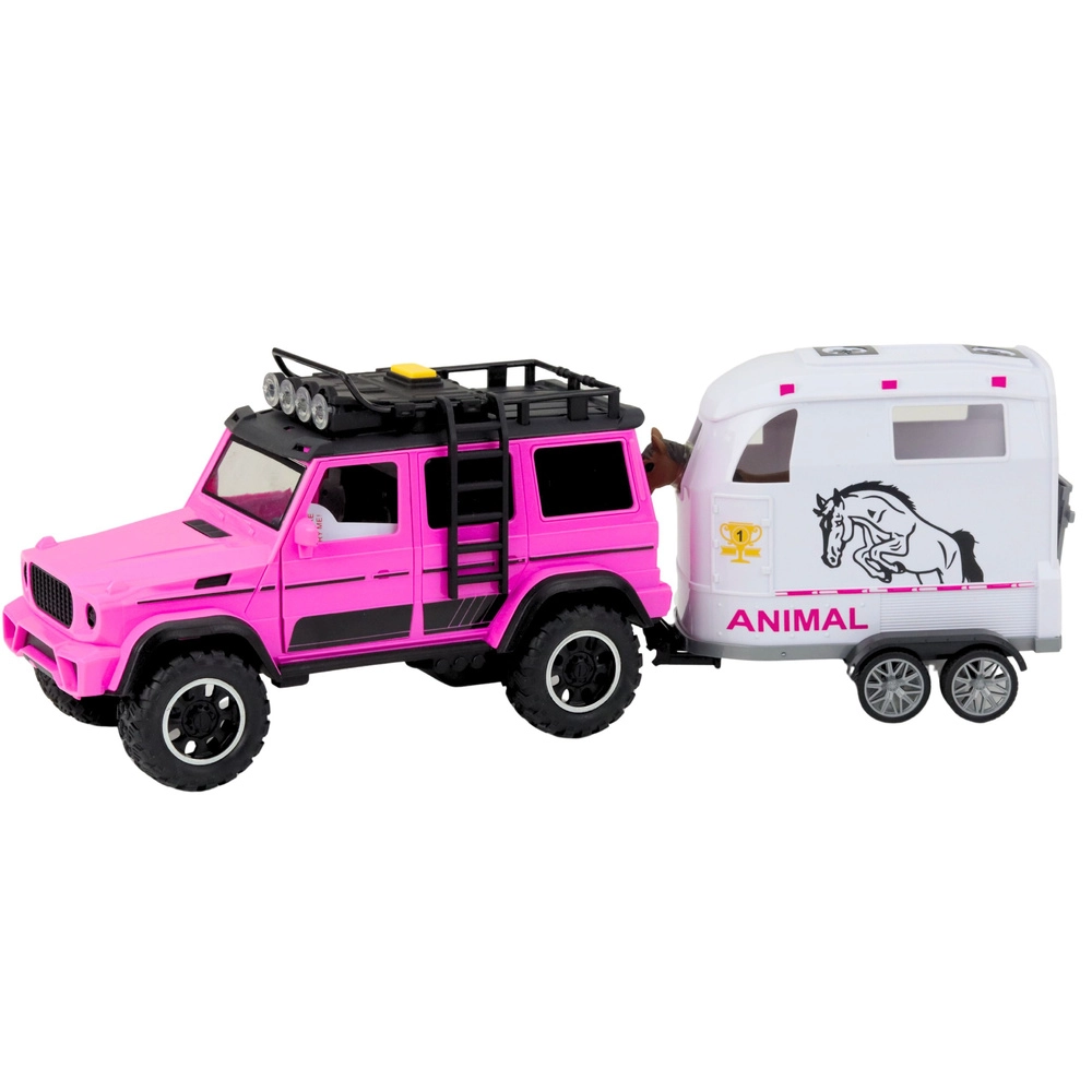 Entdecken Sie ein realistisches Spielset, das einen robusten Geländewagen und einen Pferdeanhänger kombiniert. Dank der detailreichen Ausführung, hochwertigem Kunststoff und der attraktiven pink-weißen Farbgebung wirkt das Spiel authentisch und fördert Kreativität und Feinmotorik.