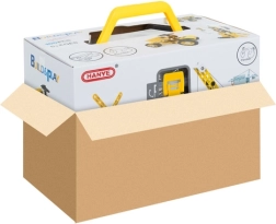 Alle Teile sind sicher in einer transparenten Box mit Verschluss und gelbem Griff verstaut. Einfach zu tragen, Ordnung ohne verlorene Teile – ideal für zu Hause und unterwegs.