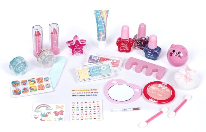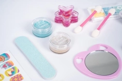 Das Set fördert Fantasie und Feinmotorik. Kinder können in einem bunten, kinderfreundlichen Design sicher erstes Schminken und Maniküre ausprobieren.