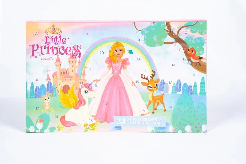 Entdecke den Zauber der Weihnachtszeit mit diesem prinzessinnenhaften Adventskalender für Kinderkosmetik. Hinter jedem Türchen wartet eine neue Überraschung – Lippenstifte, Nagellacke, Lidschatten und Accessoires für sicheres Kinderschminken und kreatives Spiel. Das bunte Design mit Prinzessin und 24 Türchen macht das Warten auf Weihnachten zu einem fröhlichen Ritual.
