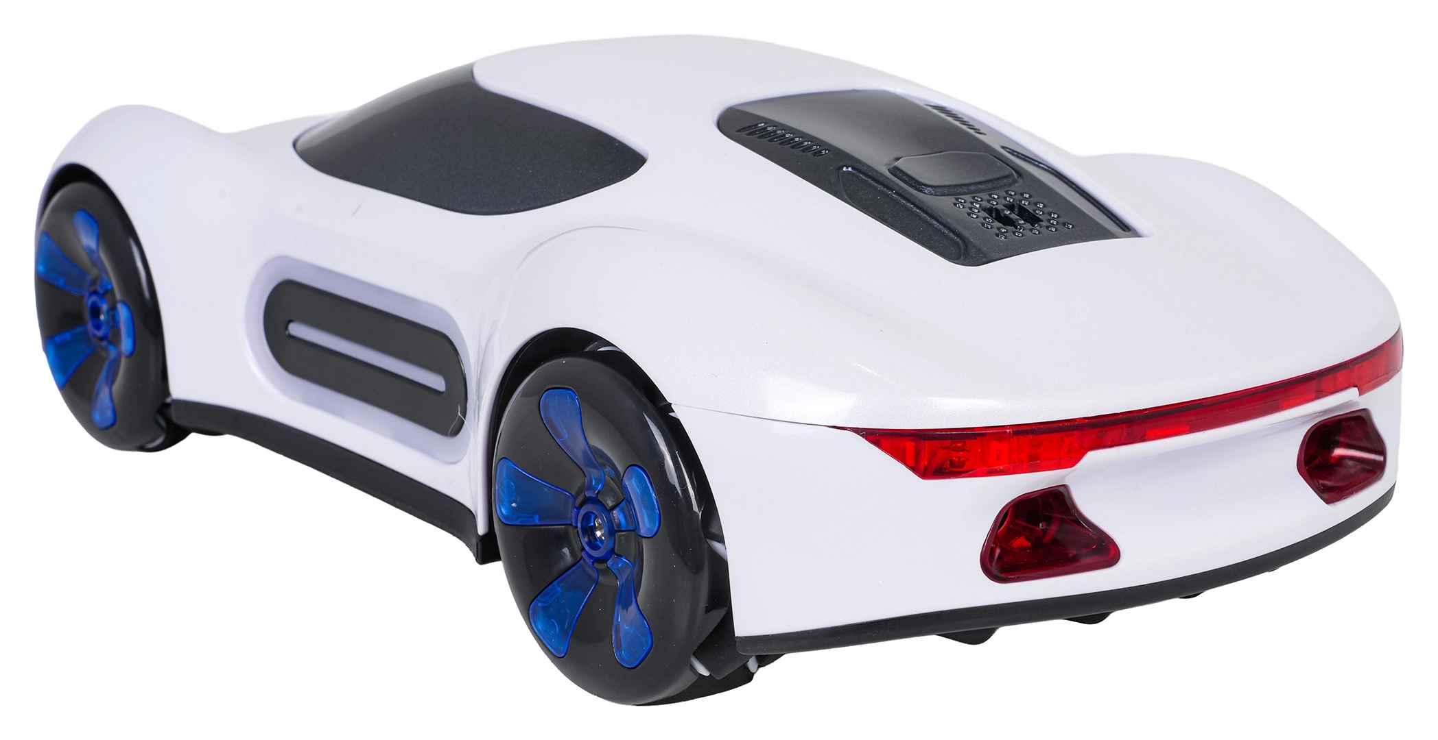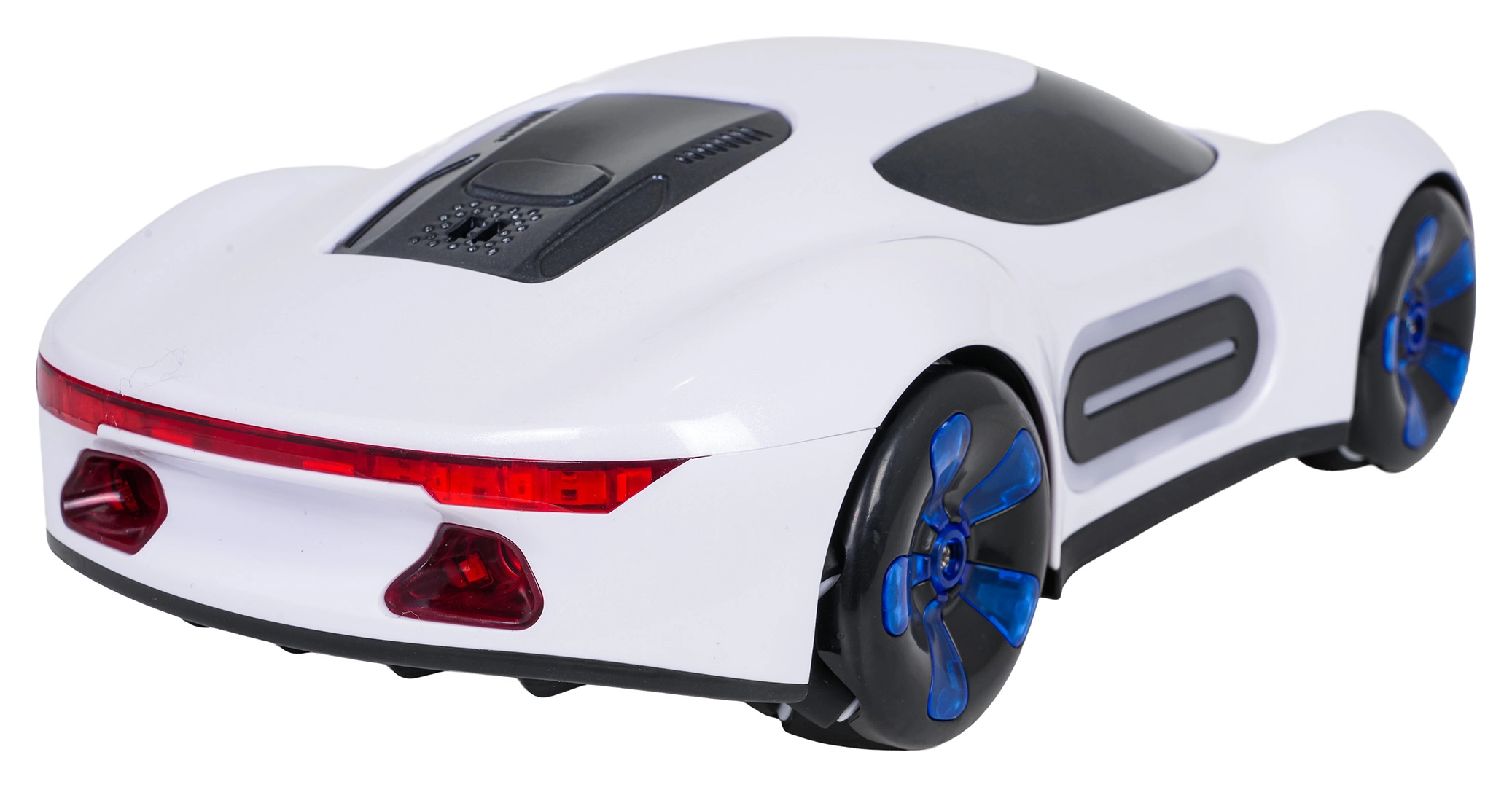 Dieses elegante weiße Modell kombiniert einen attraktiven perlmuttartigen Look mit leistungsstarken Funktionen. Nach dem Befüllen des Tanks mit Wasser erzeugt es realistischen Rauch aus zwei Stellen, was der Fahrt Show-Charakter verleiht. LED-Lichter vorne, hinten, an den Seiten und in den Rädern sorgen auch im Dunkeln für ein großartiges Spektakel.
