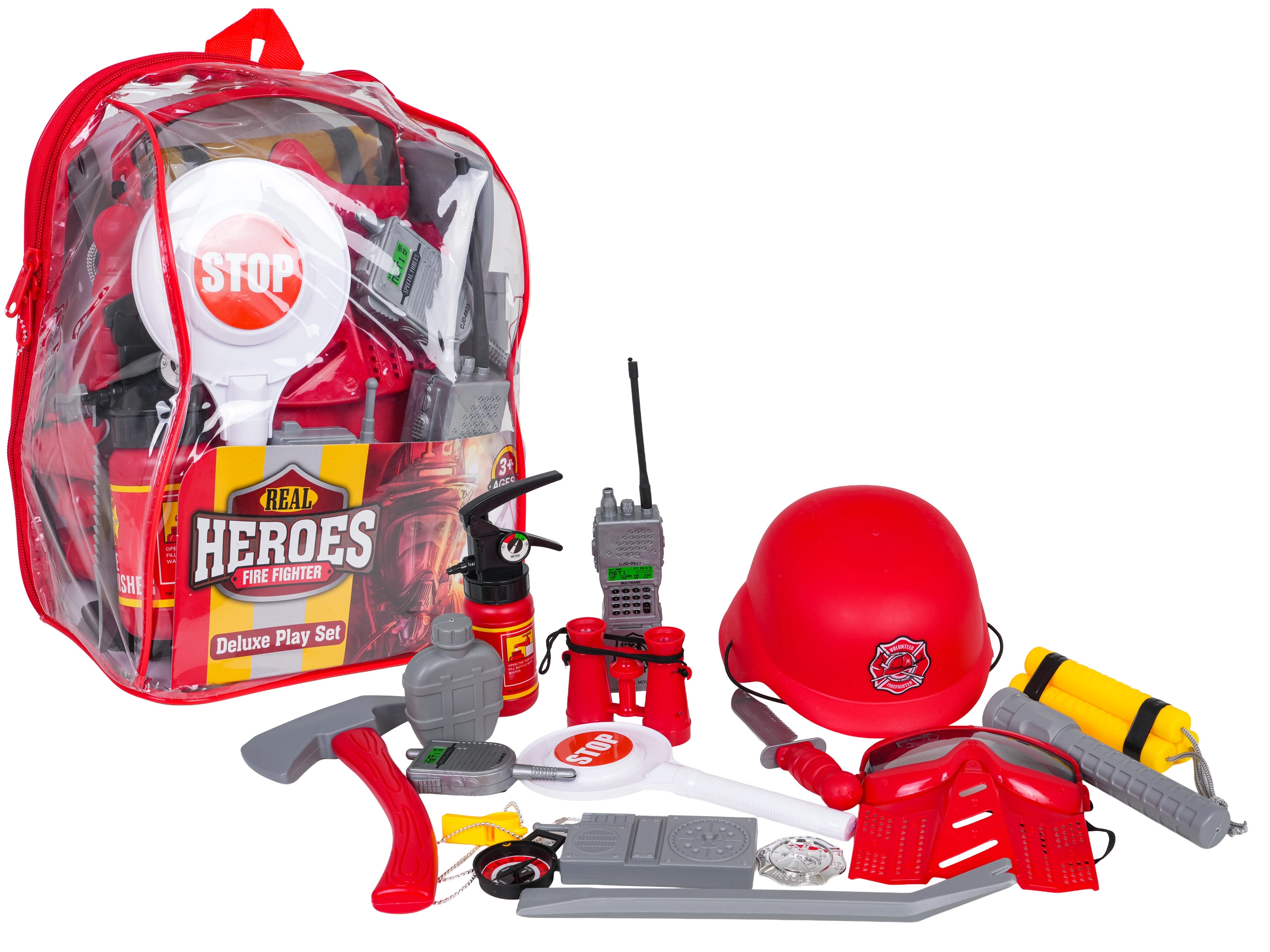 Mega-Set für kleine Feuerwehrleute im transparenten Rucksack (18 Teile)