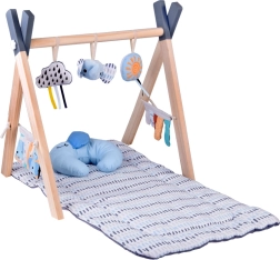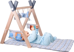 Stabiler A-Rahmen aus Naturholz mit mehreren Befestigungspunkten für Spielzeuge bietet eine feste und sichere Basis für das tägliche Spielen zu Hause und unterwegs.