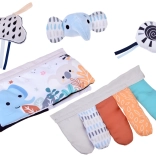 raschelnde Materialien, Quietsch-Elemente, Textilbänder und verschiedene Texturen