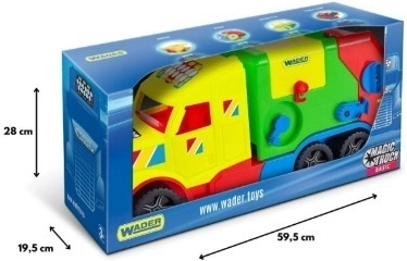 Entdecken Sie das robuste Müllfahrzeug aus der Serie MAGIC TRUCK BASIC, das mit realistischen Funktionen und leuchtenden Farben begeistert. Das Fahrzeug verfügt über einen hebbaren Container, einen öffnenden Heckdeckel, ein Förderband zum Bewegen der Ladung und im Set sind 2 Abfalltonnen enthalten. Dank des strapazierfähigen, sicheren Materials und vieler beweglicher Elemente fördert es die Feinmotorik, die Fantasie und das Lernen von Mülltrennung. Fahrzeuglänge 59,5 cm. Geeignet ab 3 Jahren.