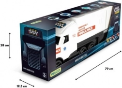 MAGICKY TRUCK ACTION – Ambulanz ist ein realistisches Spielzeug, inspiriert von echten Lastwagen. Dank durchdachter Ausführung bietet es Kindern viele Spielmöglichkeiten: Beladen und Entladen, Umbau der Kombination sowie die Nutzung des Aufliegers als eigenständige Einheit. Die widerstandsfähige und stabile Konstruktion ist für den langfristigen Einsatz drinnen und draußen konzipiert.