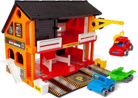 Entdecken Sie den realistischen Autoservice für Kinder, der zwei Servicestationen, Auffahrten sowie einen funktionalen Aufzug und Kran zum Anheben von Fahrzeugen bietet. Öffnende Türen und zahlreiche bewegliche Elemente garantieren langen Spielspaß. Enthalten sind 2 Autos, 1 Anhänger, 2 Container für Öl und Ersatzteile sowie 34 Aufkleber, um die Umgebung nach eigener Fantasie zu gestalten.