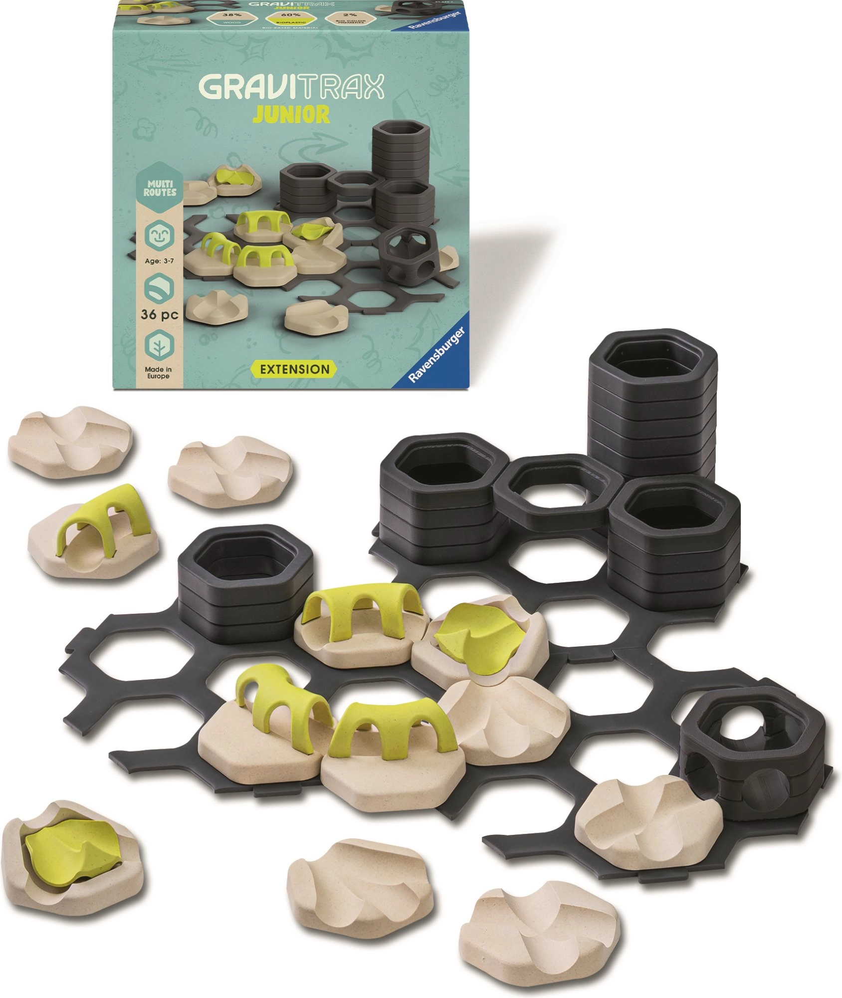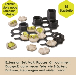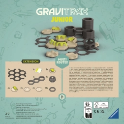 Die Erweiterung bringt mehr Möglichkeiten, die Murmeln in verschiedene Richtungen zu führen und verschlungene Wege voller Überraschungen zu gestalten. Ideal zur Ergänzung bestehender GraviTrax Junior Sets und zur Förderung kreativen und selbstständigen Spielens für Kinder ab 3 Jahren.