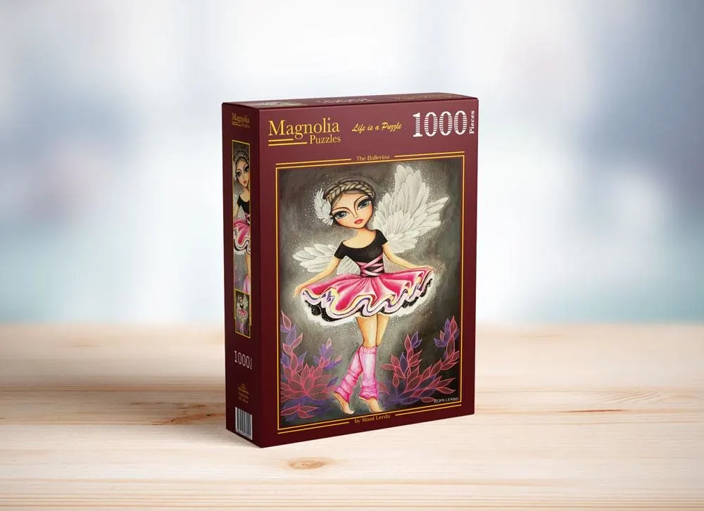 Genießen Sie Entspannung mit diesem eleganten Puzzle mit Ballerina-Motiv von MAGNOLIA. Das Puzzle mit 1000 Teilen bietet die ideale Herausforderung für Liebhaber von Puzzles und Kunst. Nach dem Zusammensetzen entsteht ein Bild mit den Maßen 48 × 68 cm, das sich hervorragend zum Einrahmen eignet.