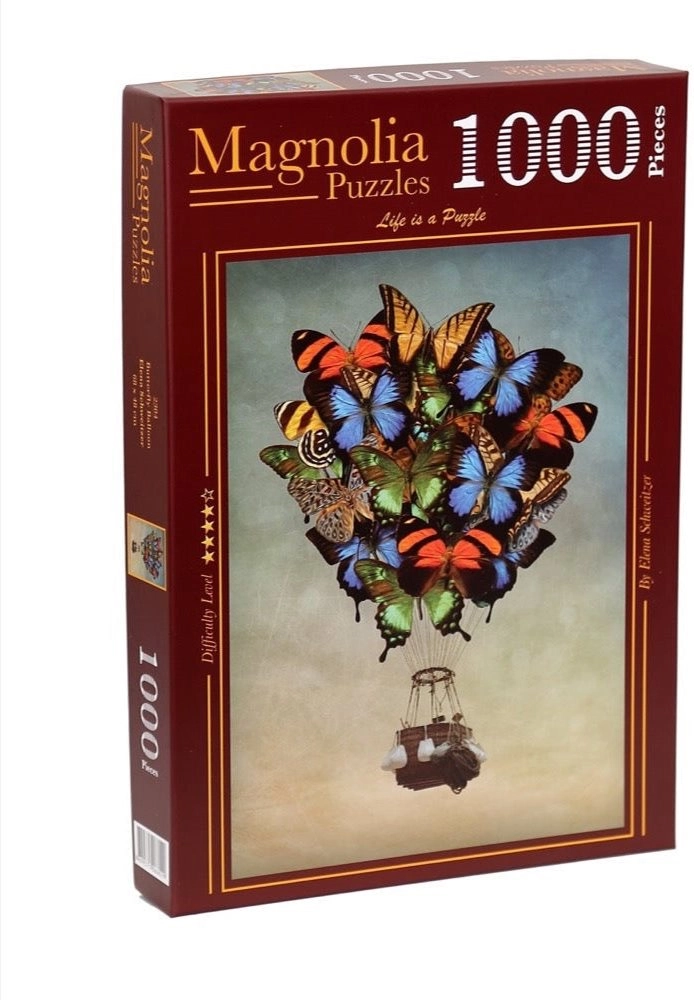 Dieses elegante Puzzle mit dem poetischen Motiv eines aus Schmetterlingen geformten Ballons bringt harmonische Farben und entspannte Auszeiten. Dank 1000 sorgfältig ausgestanzter Teile genießen Sie stundenlange, fokussierte Unterhaltung und erhalten nach der Fertigstellung ein dekoratives Bild im Format 48 × 68 cm.