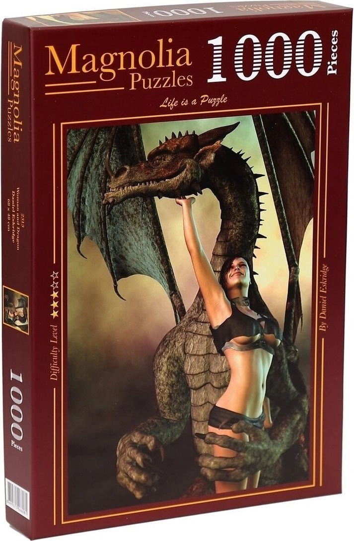 Entdecken Sie die Magie des Puzzelns mit einem Puzzle, das ein poetisches Motiv eines Mädchens und eines majestätischen Drachen vereint. 1000 präzise gestanzte Teile bieten eine angenehme Herausforderung für Puzzle-Liebhaber und fördern Konzentration und Geduld. Das fertige Bild mit den Maßen ca. 48 × 68 cm wird zu einer eindrucksvollen Wohnungsdekoration.