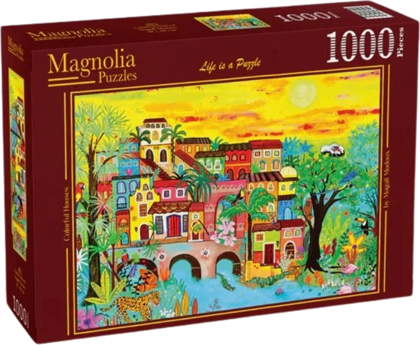 Entdecken Sie den Zauber eines ruhigen Waldes mit einem Häusermotiv, das Liebhaber von Designillustrationen und Natur gleichermaßen begeistert. Dieses Puzzle bietet 1000 präzise ausgestanzte Teile, die perfekt ineinander greifen und ein detailliertes Bild im Maß von 68 × 48 cm ergeben.