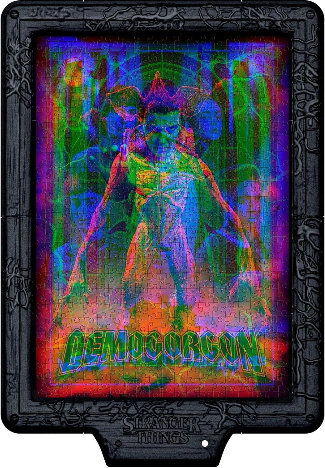 Dieses einzigartige Puzzle bringt die filmische Stimmung der Serie STRANGER THINGS in dein Zuhause. Dank des integrierten elektronischen Moduls und des RGB-LED-Streifens verwandelt sich das Bild beim Einschalten – jede LED-Farbe offenbart eine andere Ebene der Szene mit der Jagd auf den Demogorgon. Bei normaler Beleuchtung siehst du eine Komposition als Überlagerung von drei Farbebenen, in der Dunkelheit zeichnet jeder Farbton neue Details.