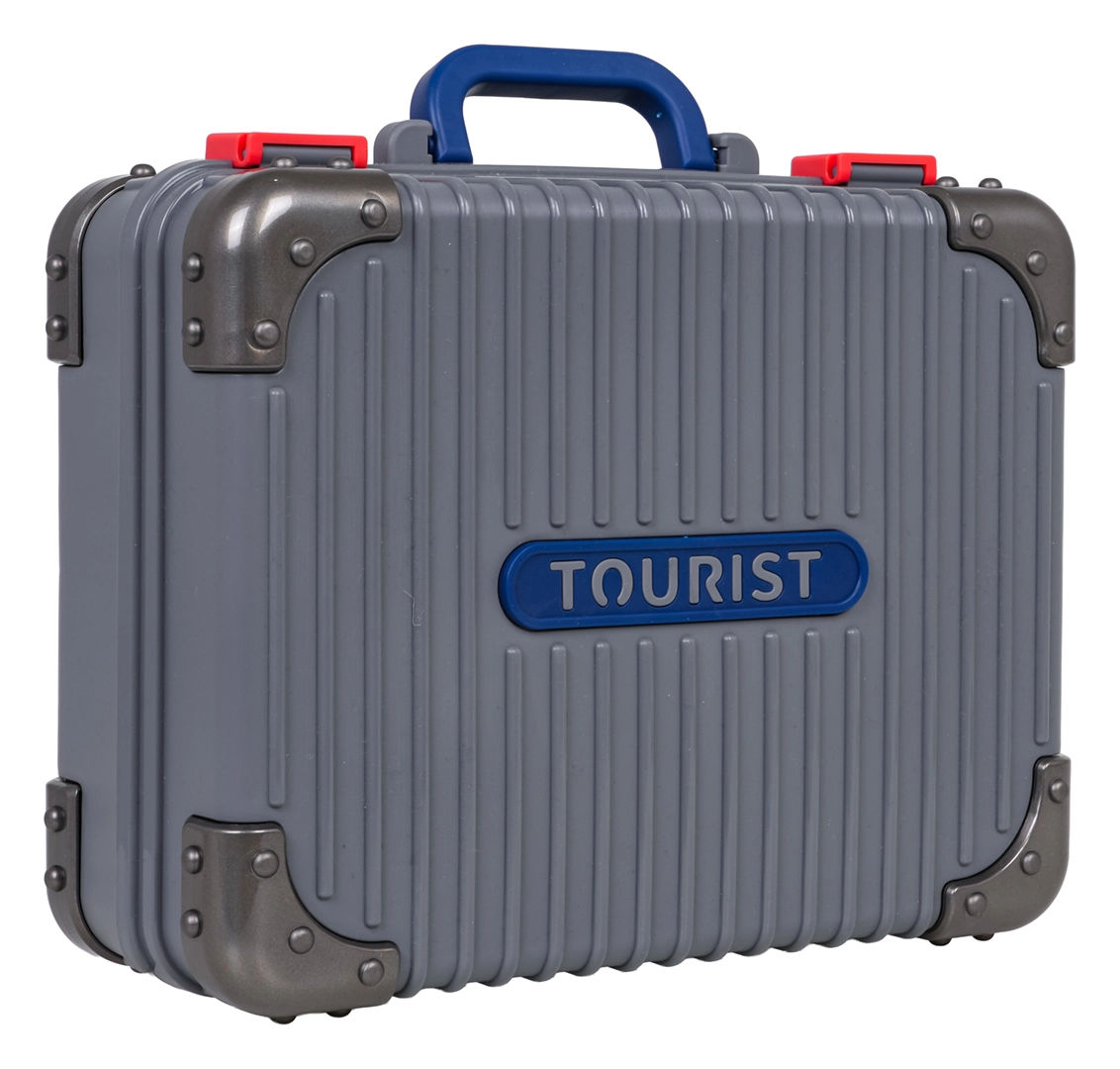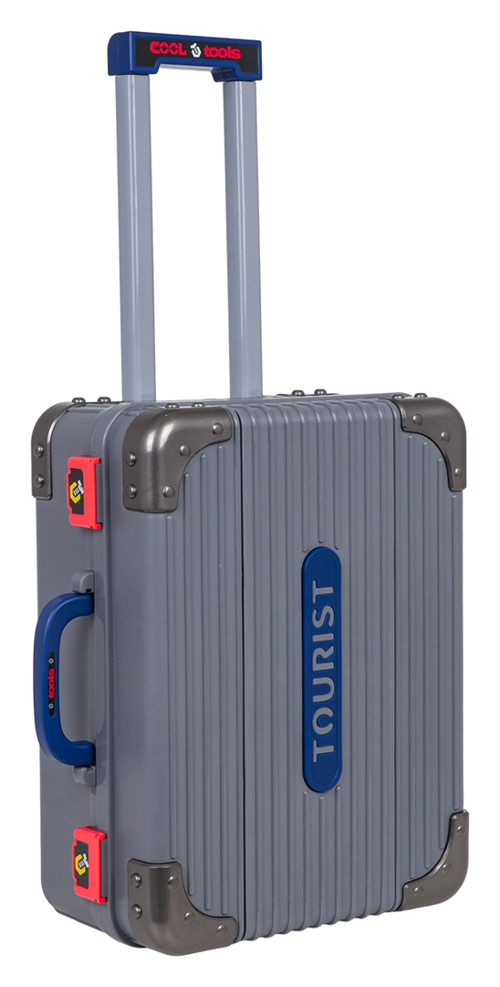 Zwei verbundene Koffer verwandeln sich in wenigen Augenblicken in eine stabile Kinderwerkbank und nach dem Spielen wieder in kompaktes Gepäck mit Rollen und ausziehbarem Griff. Einfach zu verstauen und zu transportieren.