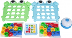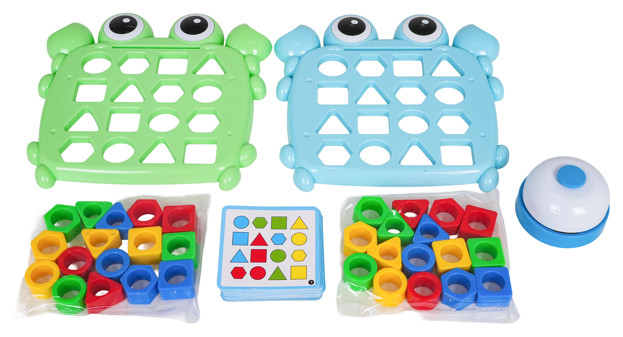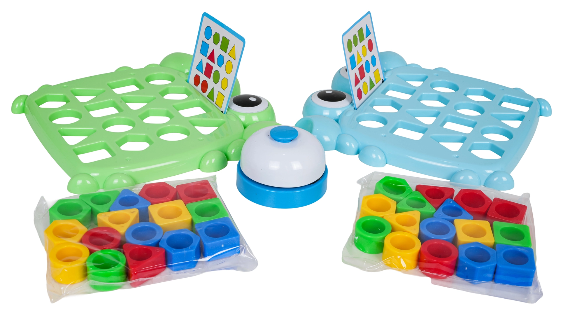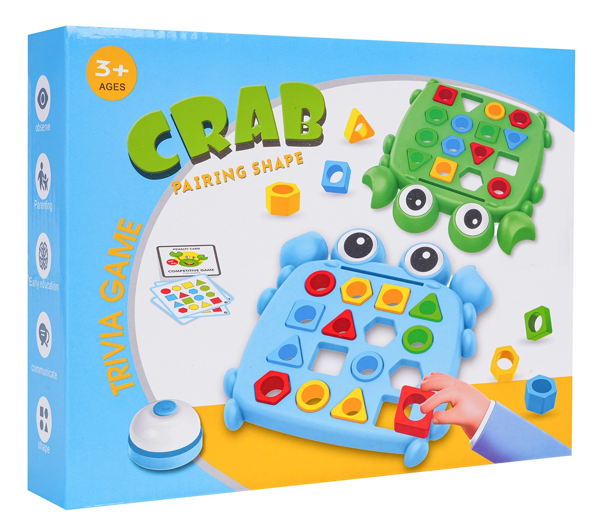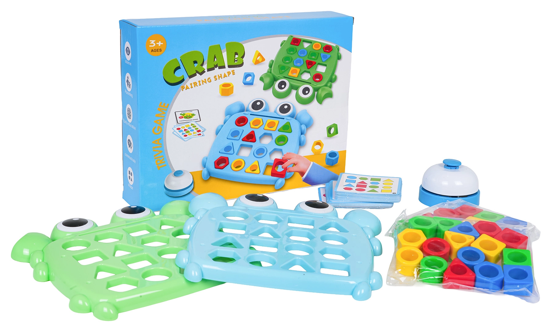 Dieses fesselnde Kinderspiel mit Krabben verbindet Lernen und Wettbewerb. Kinder wählen eine Vorlagenkarte, setzen bunte Formen in die Öffnungen des Brettes und trainieren Logik, Wahrnehmung und Hand-Auge-Koordination. Im Spiel zu zweit entscheidet die Geschwindigkeit – wer das Muster zuerst fertigstellt und das Glöckchen drückt, gewinnt die Karte.