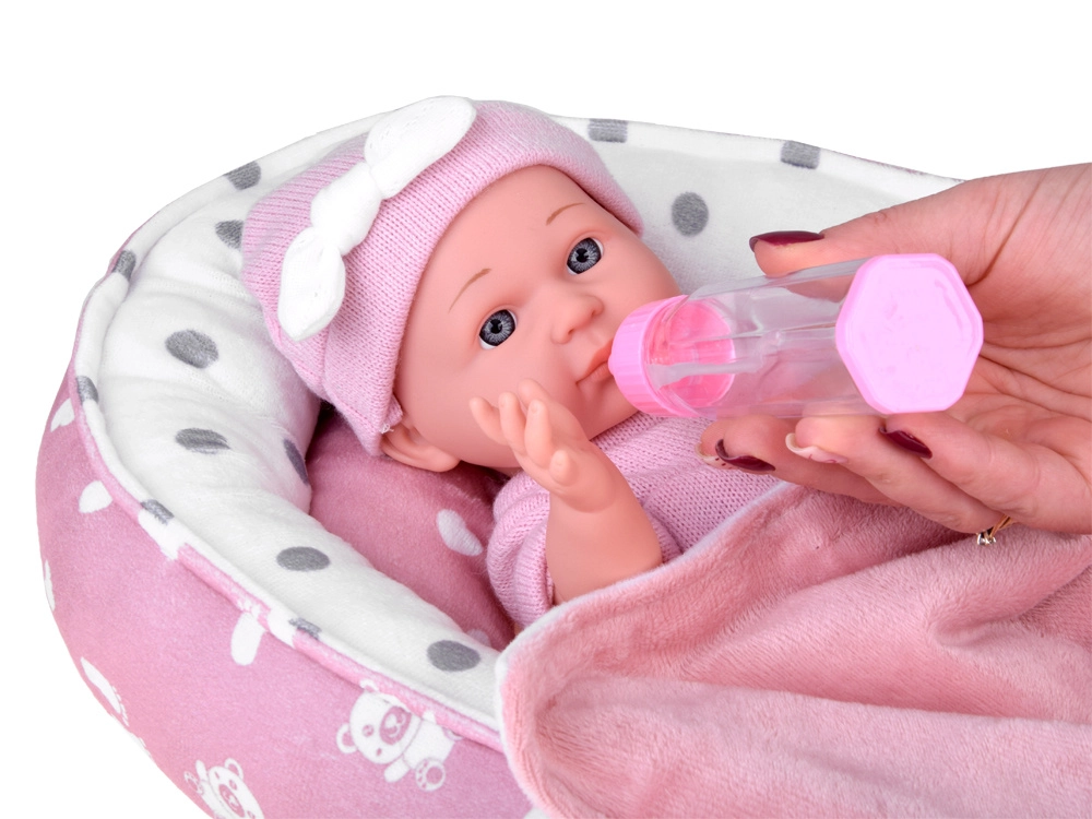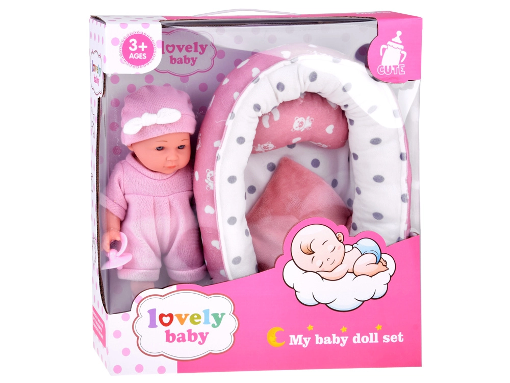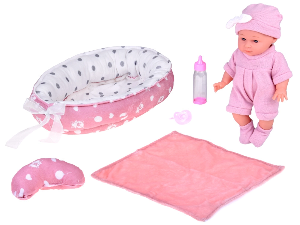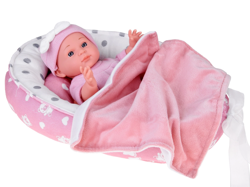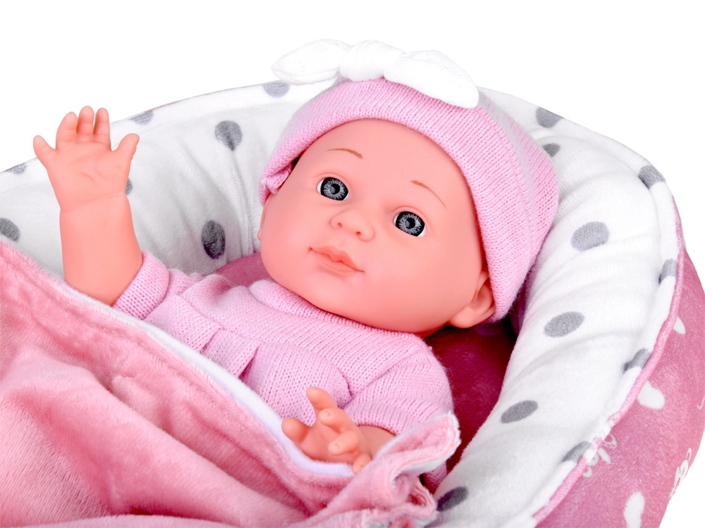 Diese Babypuppe ist für liebevolle Pflege-Rollenspiele konzipiert. Dank realistischer Gesichtszüge, dem weichen rosa Outfit sowie beweglichen Armen und Beinen genießen Kinder stundenlange kreative Unterhaltung. Das kuschelige textile Nestchen mit Kissen und Decke bietet dem Baby einen bequemen Platz zum Schlafen.