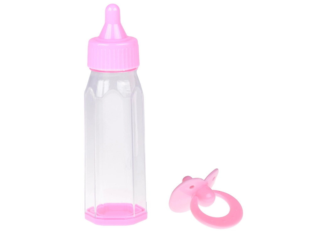 Zum Set gehören eine leichte Flasche und ein Schnuller, mit denen Kinder die Pflege vom Füttern bis zum Zubettgehen ausprobieren können.
