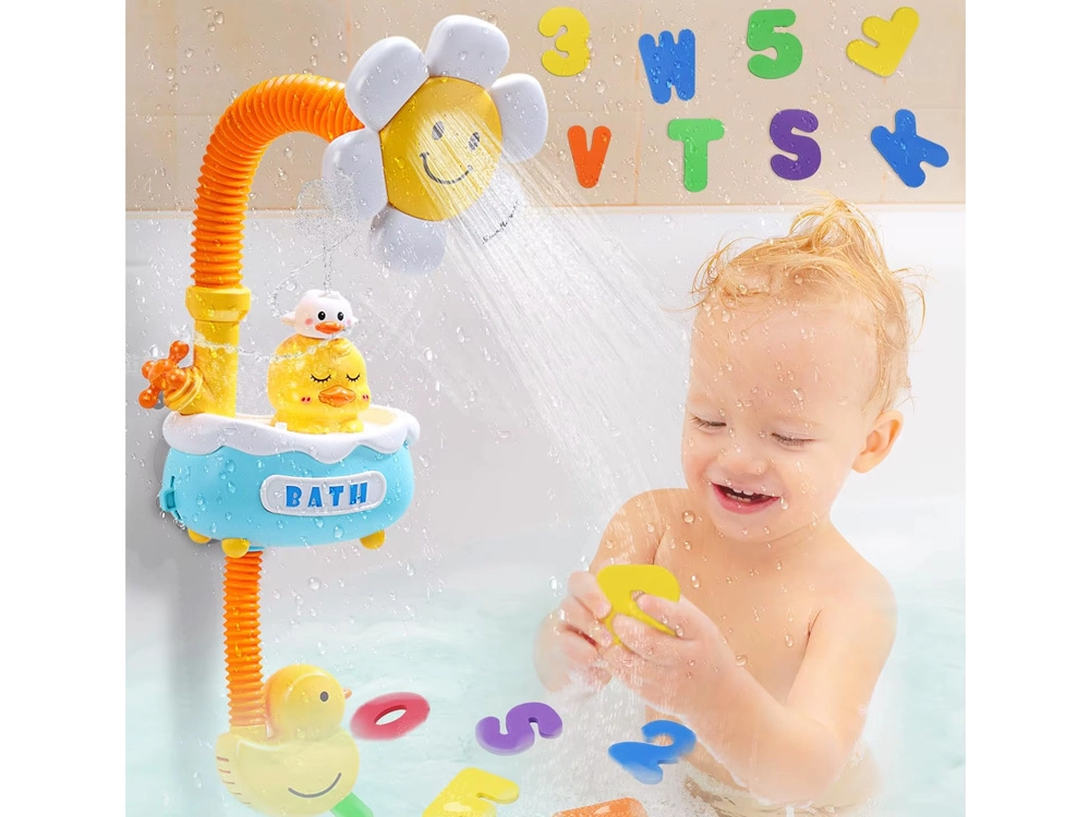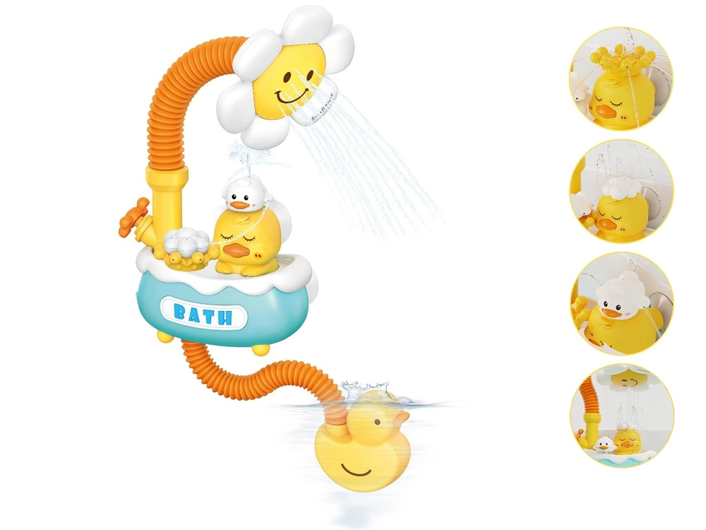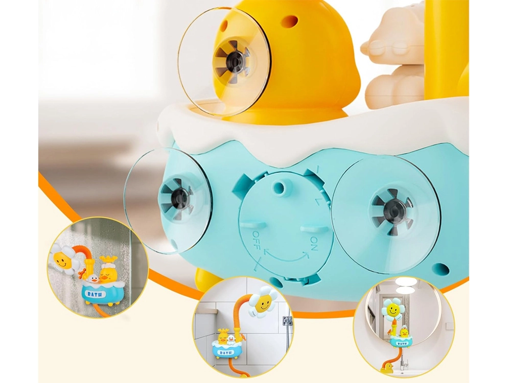 Verwandeln Sie das tägliche Baden in Spaß mit dem niedlichen Duschspielzeug! Eine elektrische Pumpe saugt Wasser an und leitet es durch einen flexiblen Schlauch in den Blumenbrausekopf, der einen sanften, sicheren Wasserstrahl erzeugt. Dank der Saughalterungen lässt sich das Spielzeug leicht an Badewanne oder Fliesen befestigen, die 360°-Drehverstellung erleichtert das Ausrichten des Wassers und die austauschbaren Aufsätze mit Entchen-, Wolken- und Kronenmotiv bringen viele Wassereffekte.