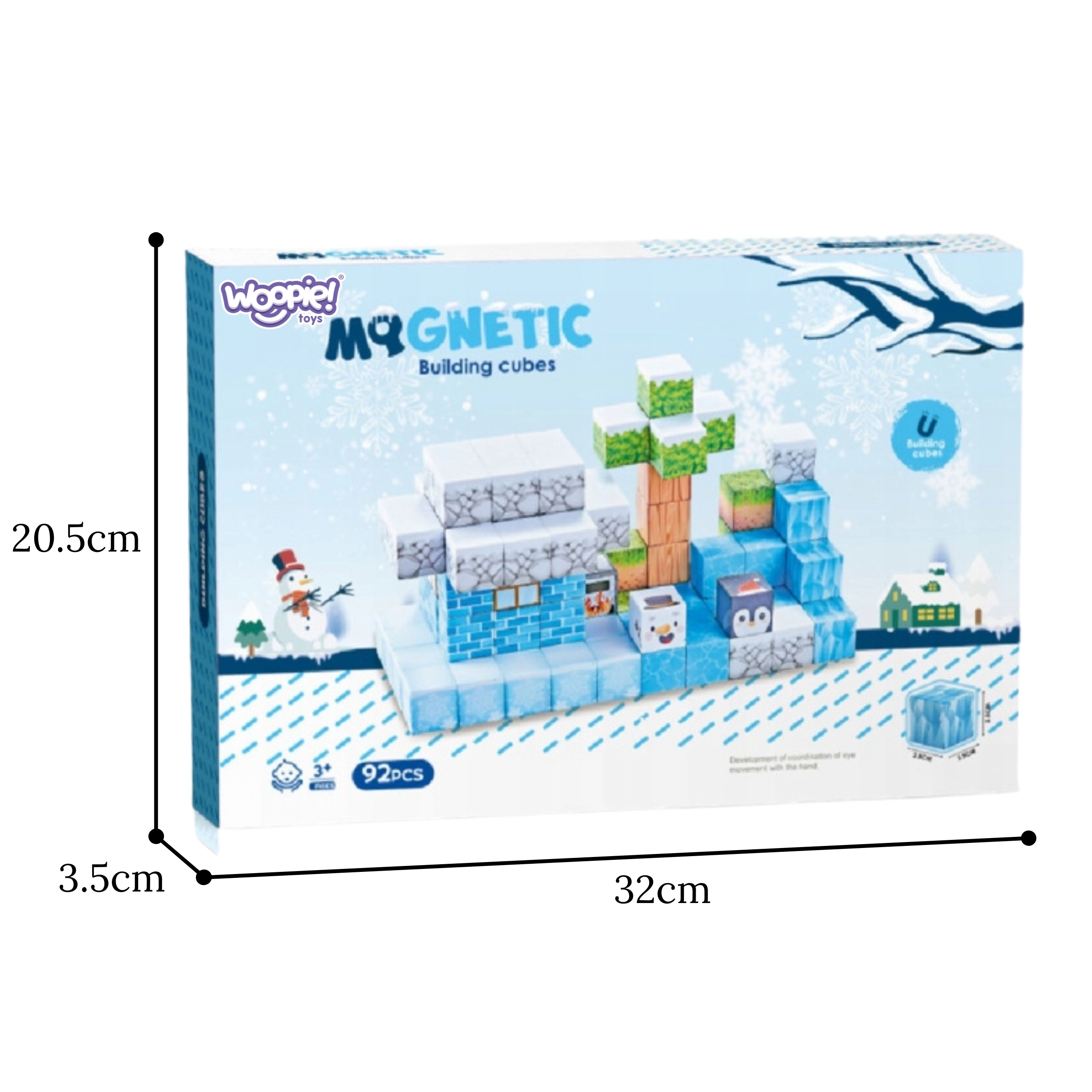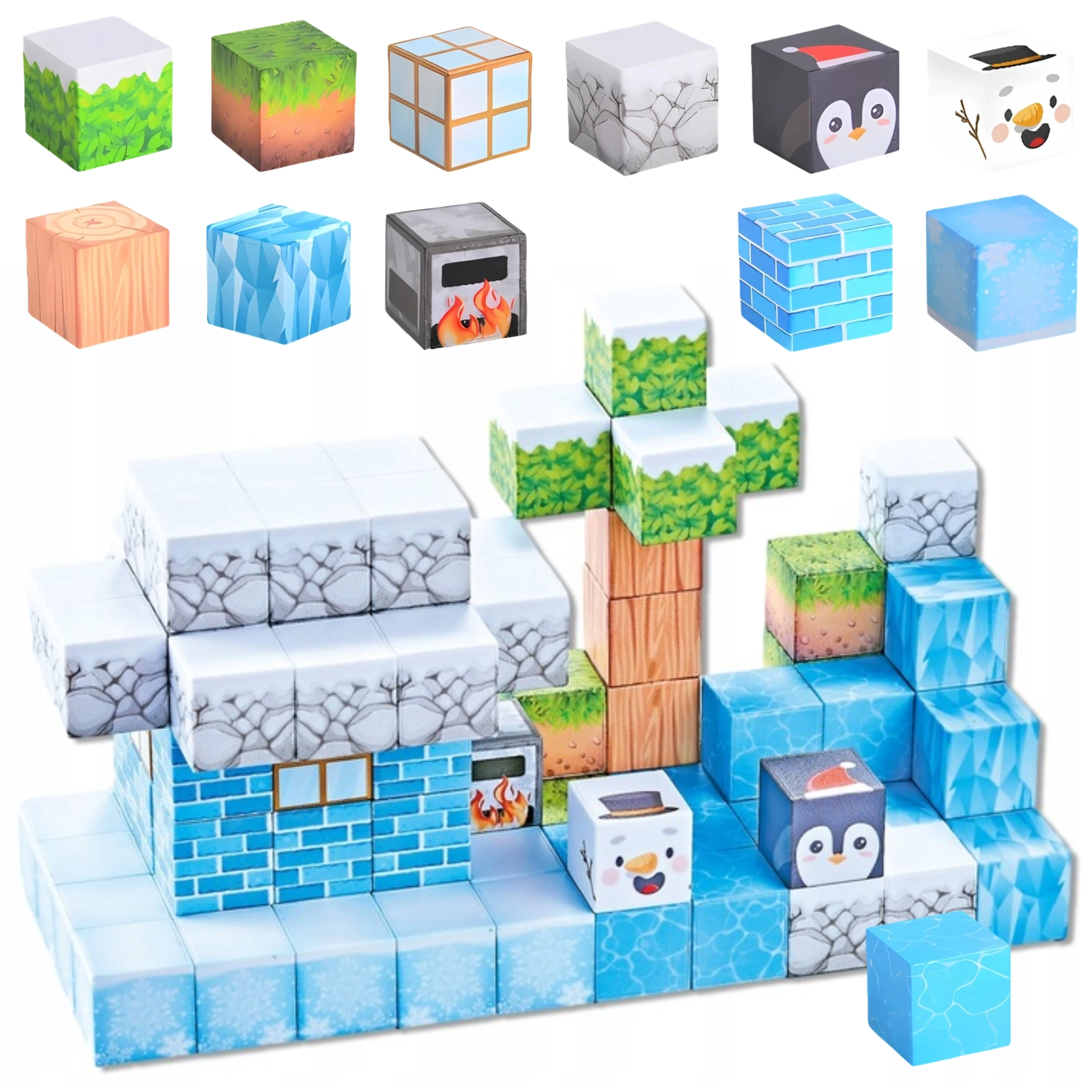 Dieses 66-teilige Set magnetischer Würfel im Winterstil begeistert kleine Baumeister mit vielfältigen Mustern von Eis, Stein, Holz, Blättern und Polartieren. Jedes Teil misst 2,5 × 2,5 × 2,5 cm und haftet dank integrierter Magnete sicher aneinander, sodass Konstruktionen ganz ohne Kleber oder zusätzliche Verbinder halten.