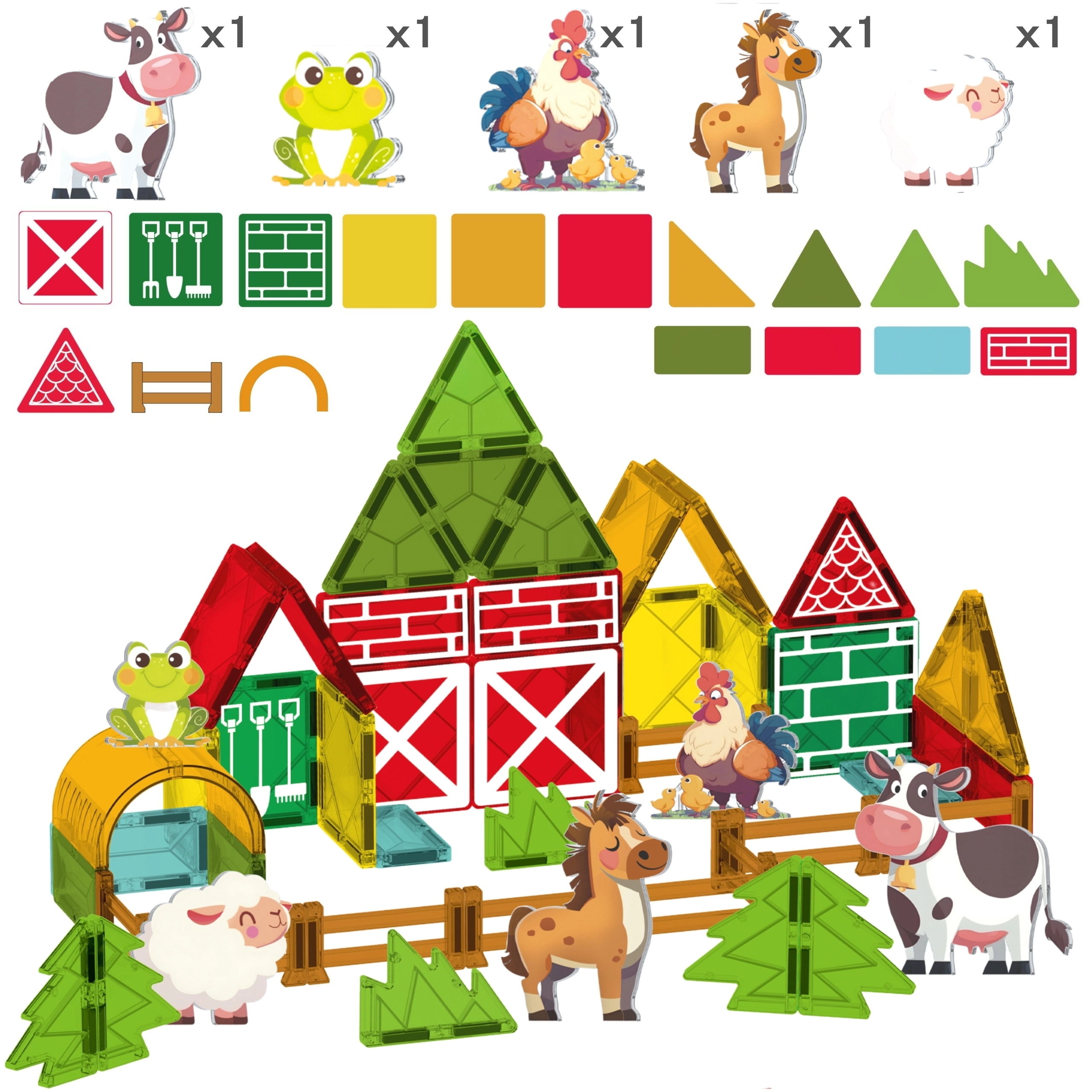 Entdecken Sie die Welt des Bauens mit dem magnetischen Bauset Woopie im Bauernhof-Motiv. Kinder können Formen und Farben kombinieren, Gebäude entwerfen und Umgebungen für Tiere schaffen. Die magnetischen Elemente lassen sich leicht und fest verbinden, sodass Konstruktionen ihre Form behalten und das Spiel flüssig und sicher ist.