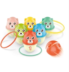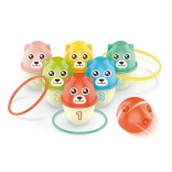 Das Woopie-Set mit bunten Bären bietet Kindern ab 18 Monaten eine großartige Kombination aus Bewegung und Lernen. Jeder Bär hat eine andere Farbe und Zahl, sodass Kinder ganz natürlich Farberkennung und Ziffern verinnerlichen. Dank verschiedener Spielmöglichkeiten – Kugel werfen, Ringe treffen oder einen Turm bauen, indem die Bären ineinander gesteckt werden – wird es den kleinen Spielerinnen und Spielern nicht langweilig und sie entwickeln gleichzeitig ihre Fähigkeiten weiter.