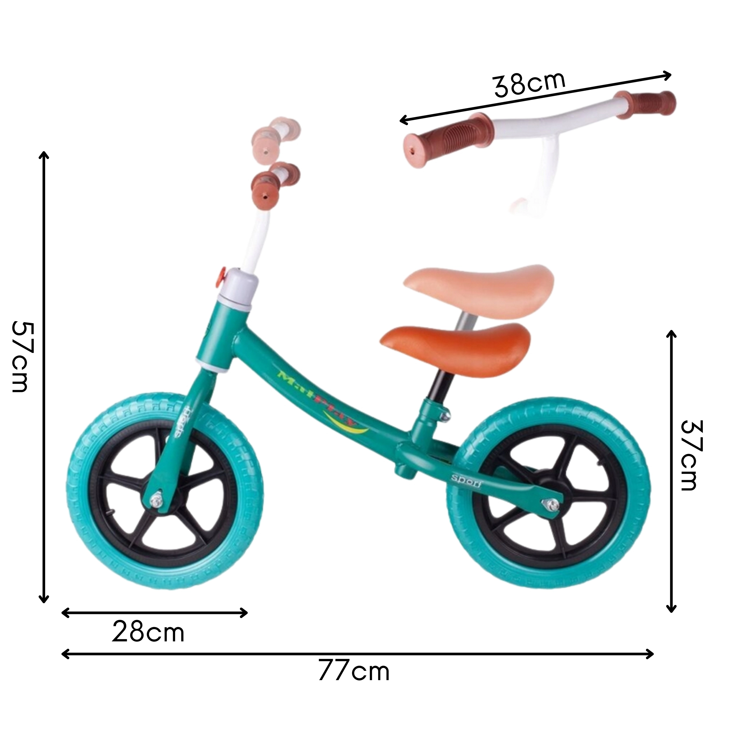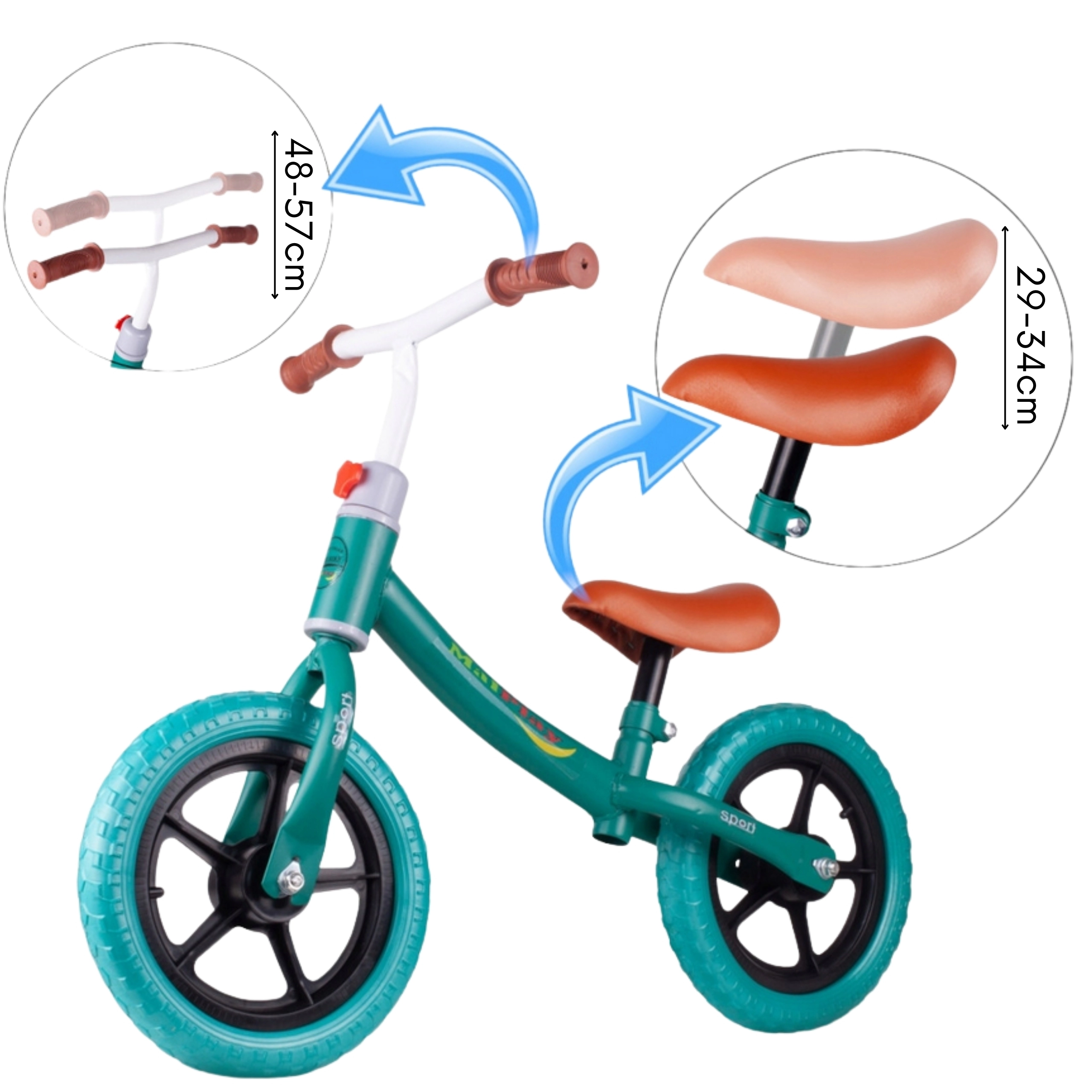 Das Laufrad passt sich der Körpergröße des Kindes leicht an, dank verstellbarem Lenker (48–57 cm) und Sattel (31–40 cm). Ergonomische Form, ein weicher Sattel und rutschfeste Griffe sorgen für Komfort und einen sicheren Halt beim Fahren.