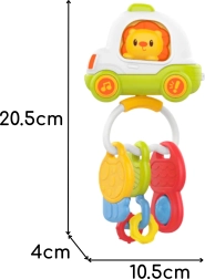 interaktives Auto mit Löwe, 3 Schlüssel in verschiedenen Formen, weicher Beißring, Aufhängeschlaufe, Geschenkverpackung