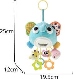 Am Körper des Elefanten sind 4 interaktive Anhänger befestigt – ein Beißring zur Linderung beim Zahnen und rasselnde Elemente zum Training von Greifen und Koordination. Kompakte Maße und eine robuste Schlaufe erleichtern das Aufhängen und Mitnehmen, sodass er sich sowohl für zu Hause als auch für unterwegs bestens eignet.