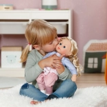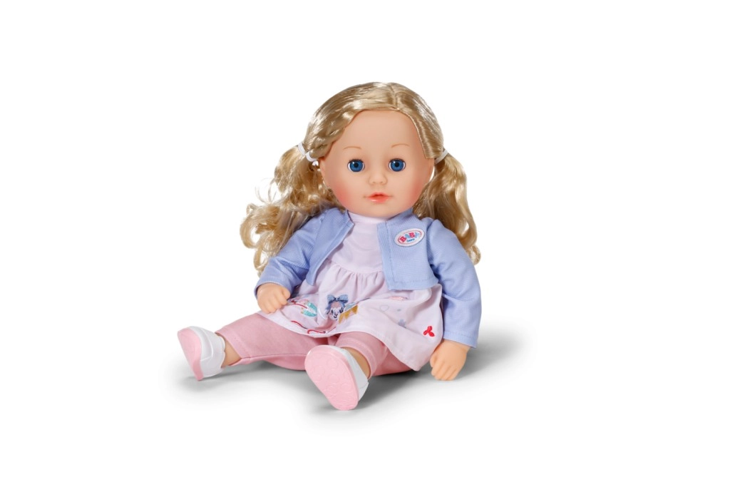 Zum Lieferumfang gehört ein komplettes Outfit: ein zartes Kleid mit leichter Jacke, bequeme Leggings und Schuhe. Dank beweglicher Gliedmaßen lässt sich die Puppe leicht hinsetzen und anziehen. Das Spiel mit der Puppe fördert Feinmotorik, Empathie und Vorstellungskraft – die ideale Wahl als erste Puppe für die Kleinsten.