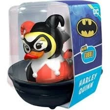 Diese Mini-Ente im HARLEY QUINN Design verbindet einen niedlichen Look mit einer Comic-Ikone. Dank der kompakten Maße passt sie perfekt ins Regal, auf den Schreibtisch oder in die Vitrine. Die glänzende Ausführung und die detailreiche Gestaltung des rot-schwarzen Kostüms machen sie zu einem auffälligen Sammlerstück.