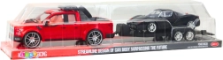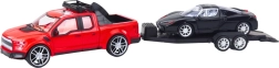 Dieses attraktive Set kombiniert einen roten Geländewagen mit Friktionsantrieb, einen abnehmbaren Anhänger und einen eleganten schwarzen Sportwagen. Dank realistischer Verarbeitung, glänzender Oberfläche und detailreicher Elemente wirken die Spielzeuge glaubwürdig und fördern kreative Szenarien – vom Fahrzeugtransport bis zu spannenden Rennen.