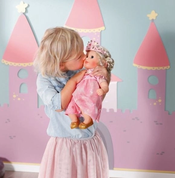 Die Puppe Baby Annabell Kleine Süße Prinzessin ist wie geschaffen für kleine Prinzessinnen mit einer Neigung zur Fantasie. Wenn du sie küsst, reagiert sie mit Kussgeräuschen und ihre Wangen erröten. Dabei schließt sie zudem ihre leuchtend blauen Augen. Mit ihren hochwertigen Haaren und der eigenen Haarbürste kannst du wunderschöne Frisuren kreieren. Der weiche Körper dieser Puppe ist ideal zum Kuscheln und Ausruhen nach einem großen Tag voller Spiele.